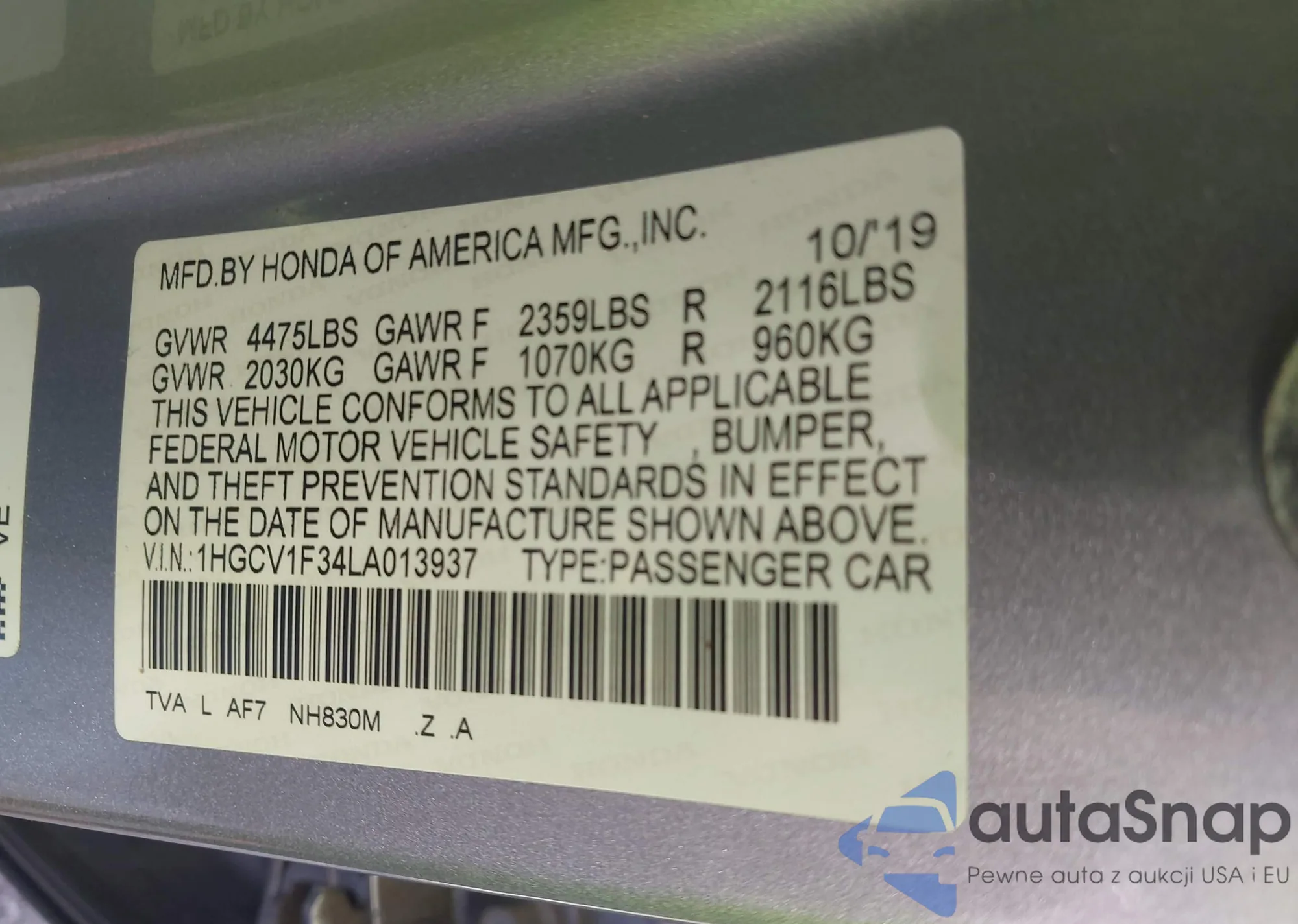 • VIN 1HGCV1F34LA013937