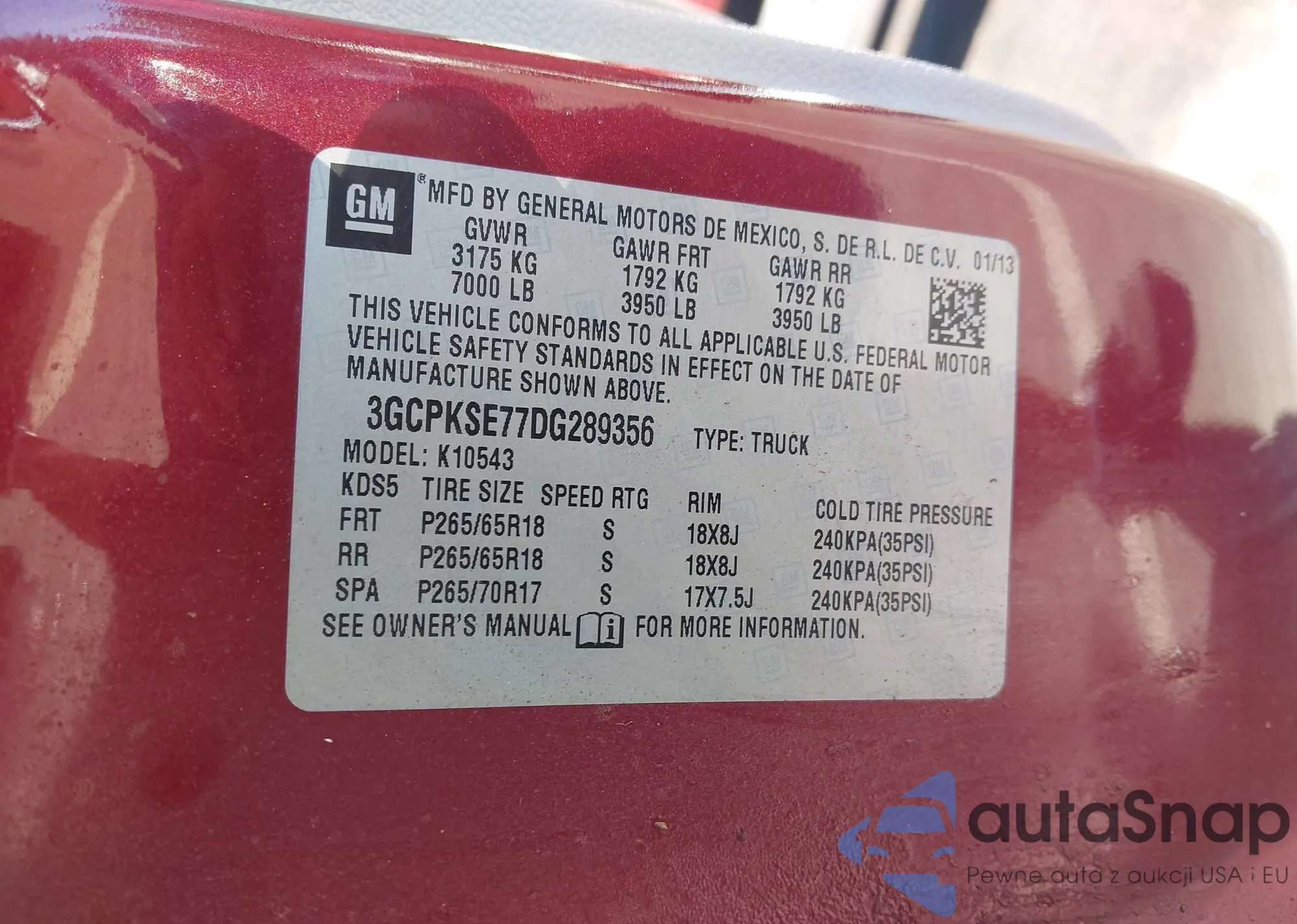 • VIN 1G4GF5E35DF315159