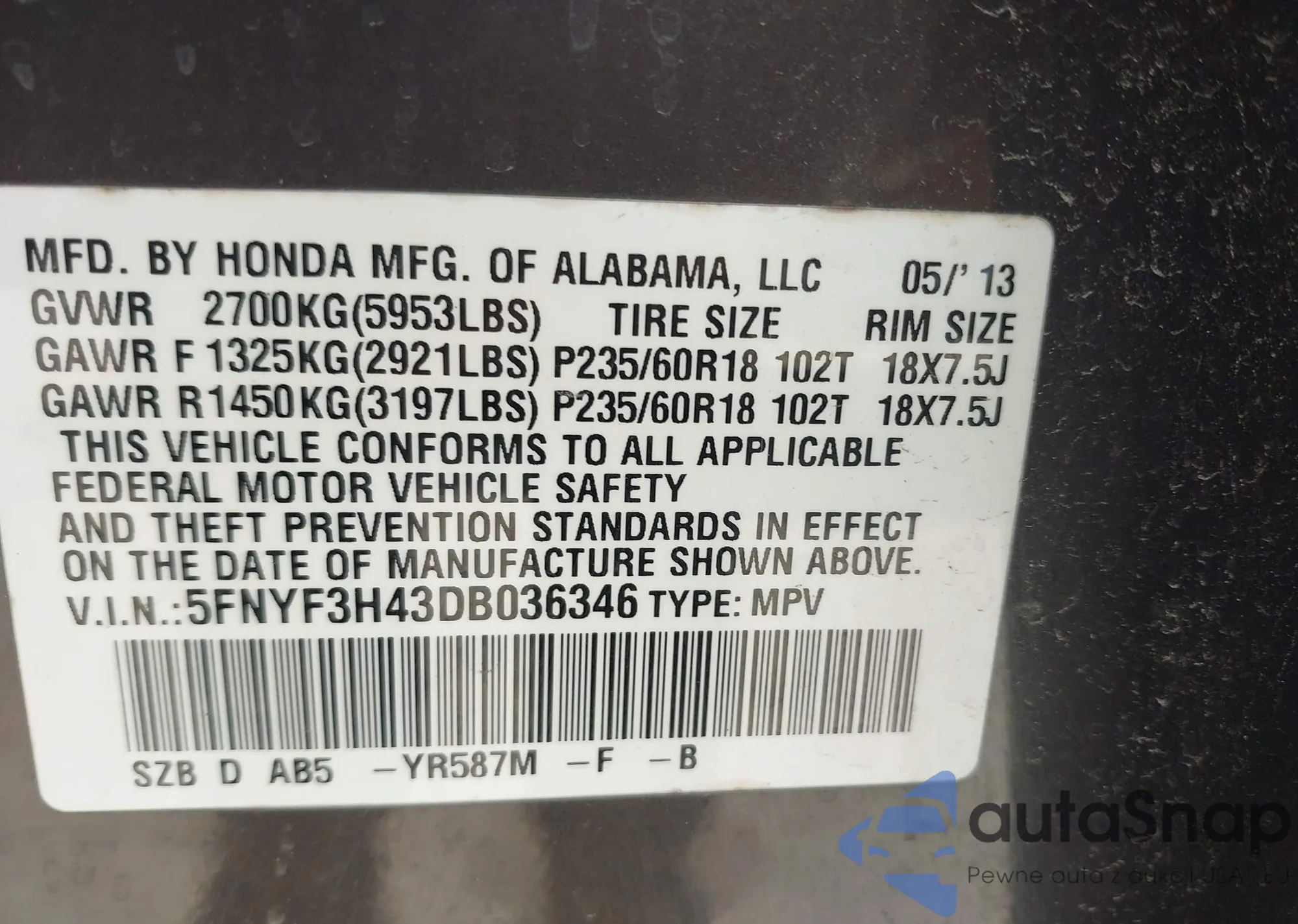 • VIN 5GAKRCED3BJ232182