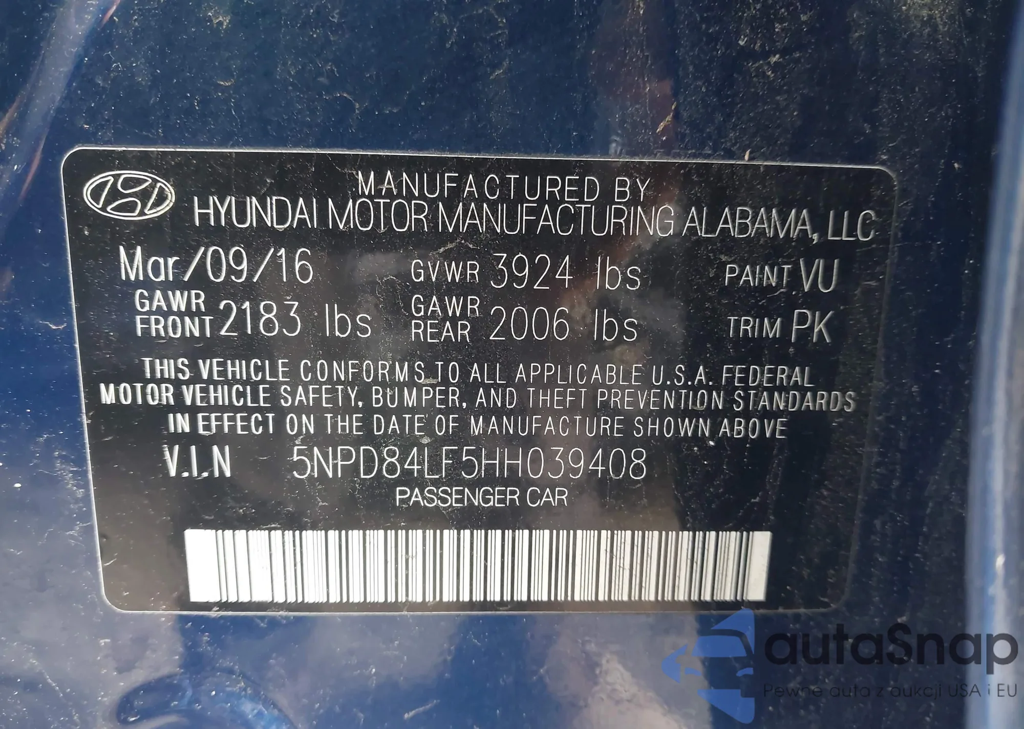 • VIN 5NPD84LF5HH039408