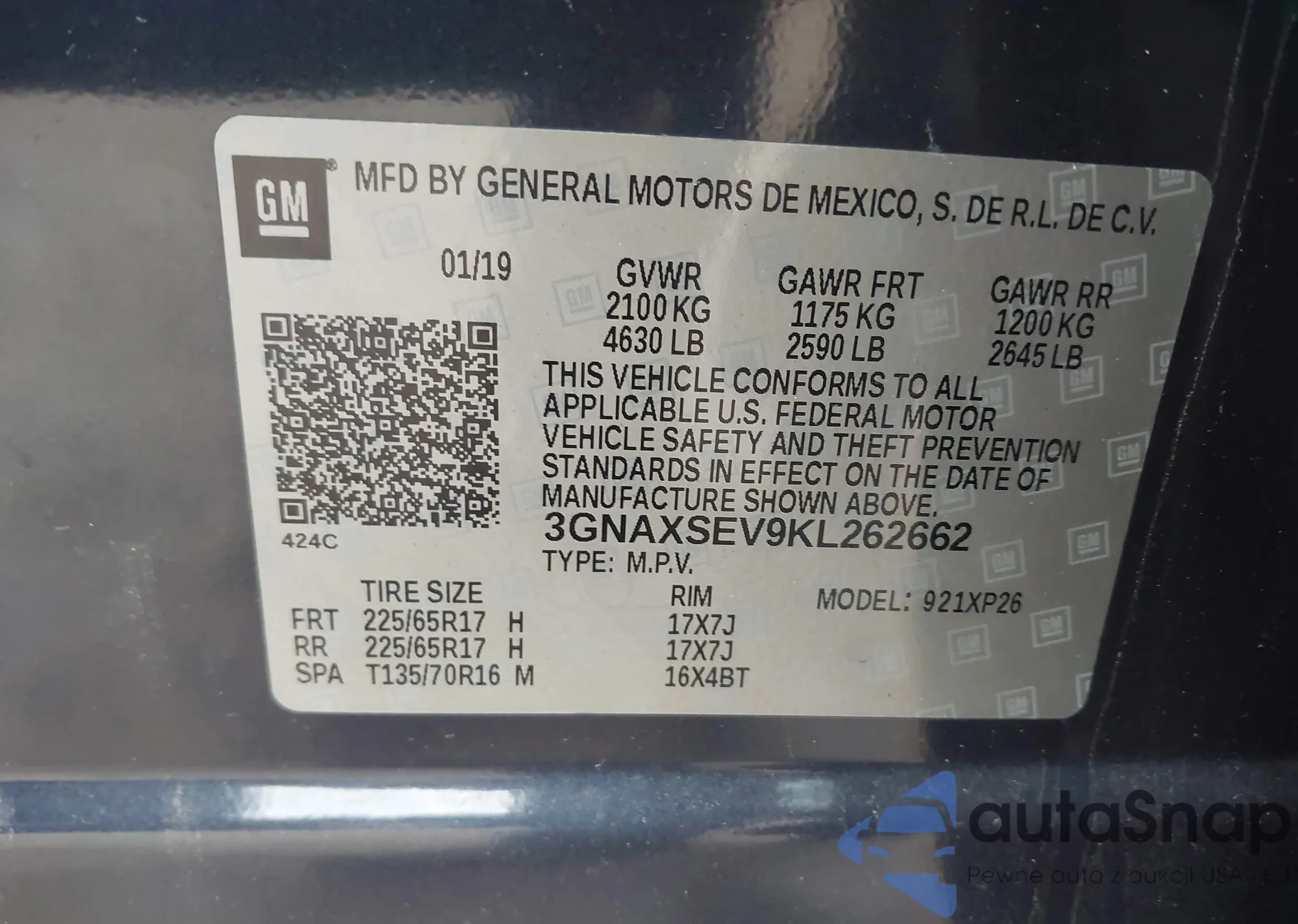 LOT: 43560963 VIN: 1GKKNMLS6HZ260493