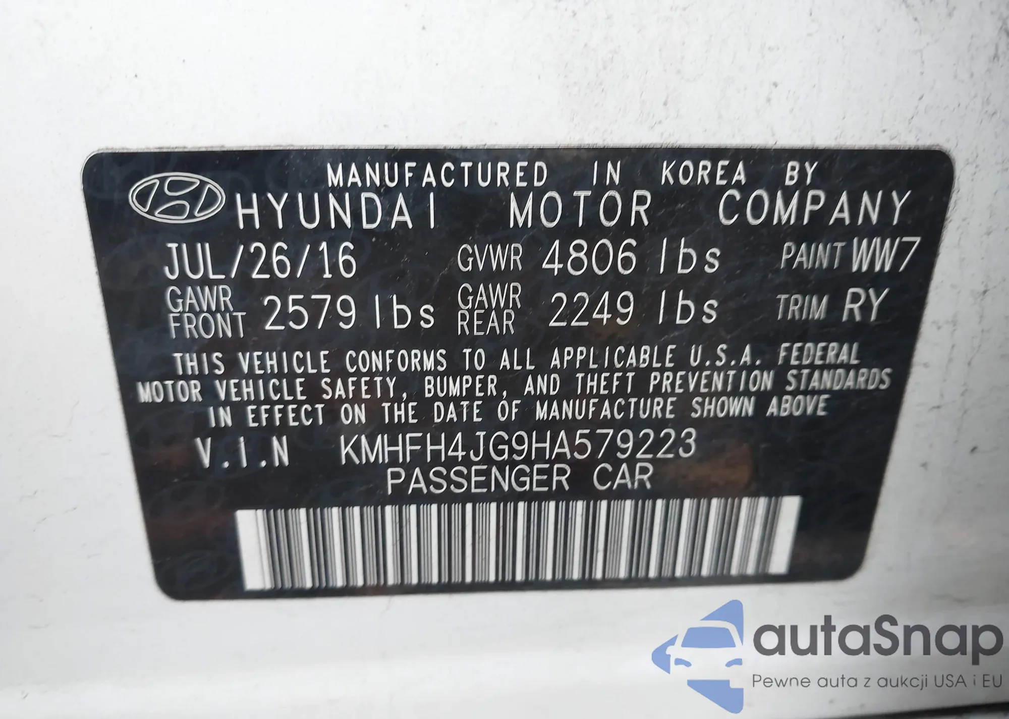 • VIN KMHFH4JG9HA579223
