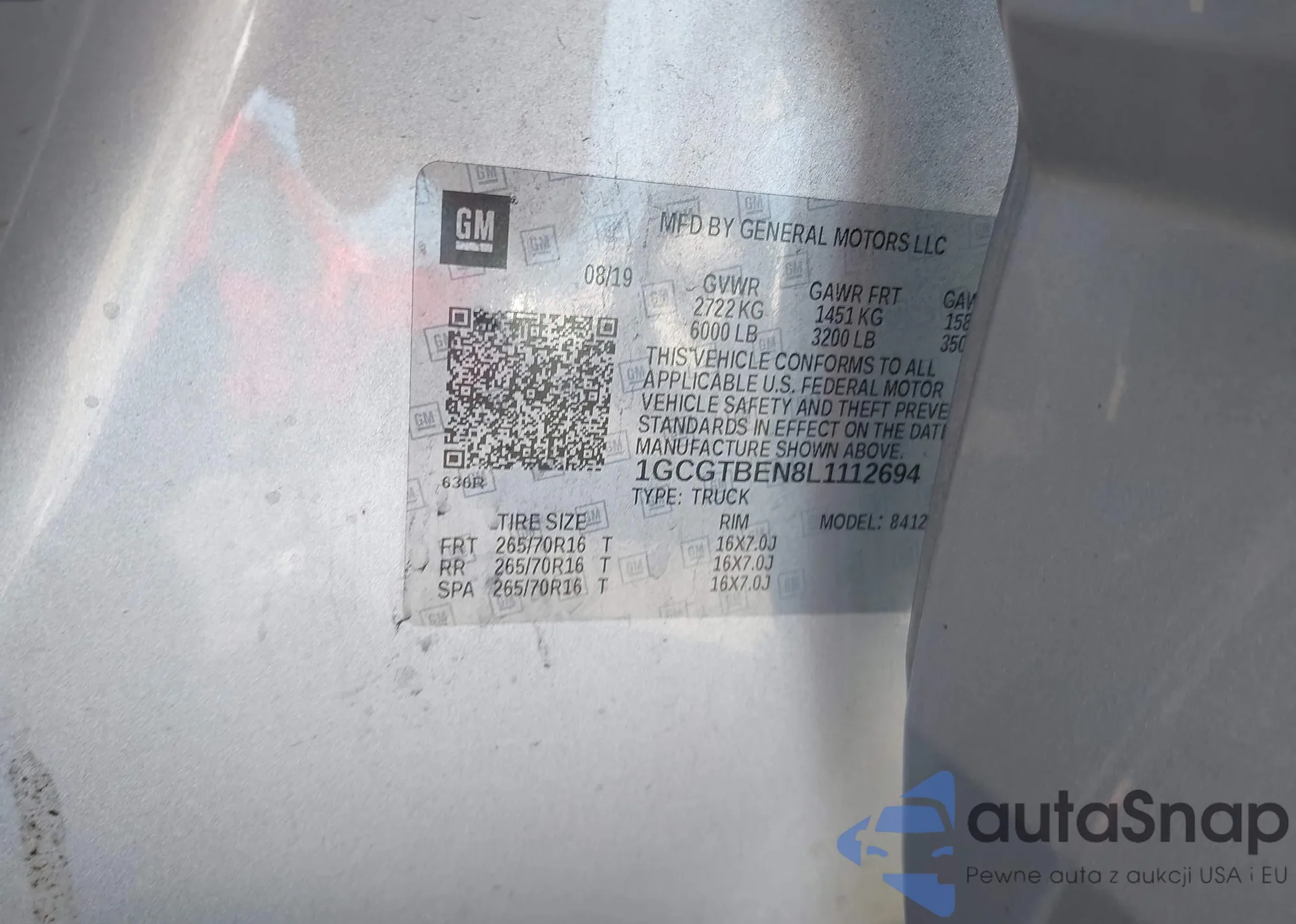 LOT: 43552769 VIN: 1GCGTBEN8L1112694