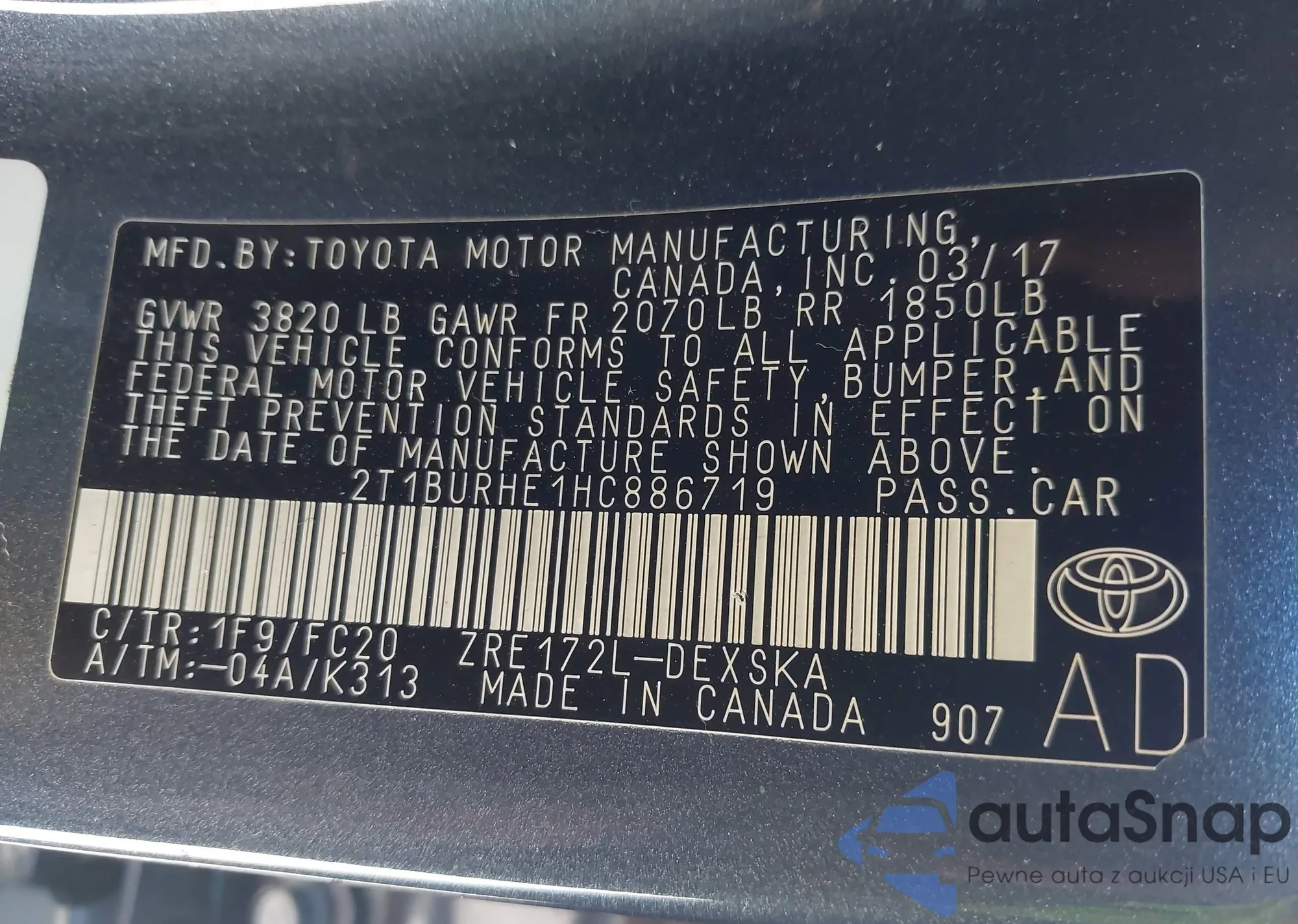 • VIN 2T1BURHE1HC886719