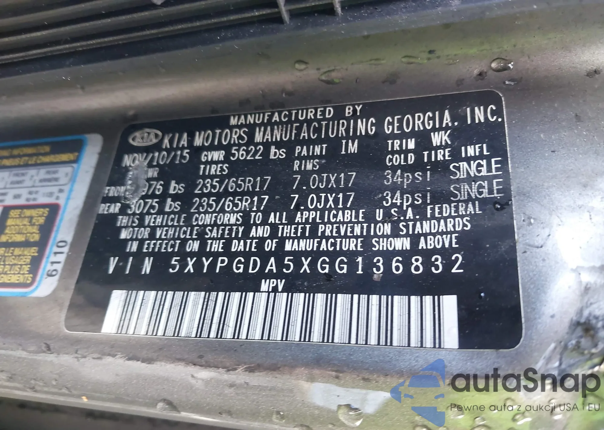 • VIN 5XYPGDA5XGG136832