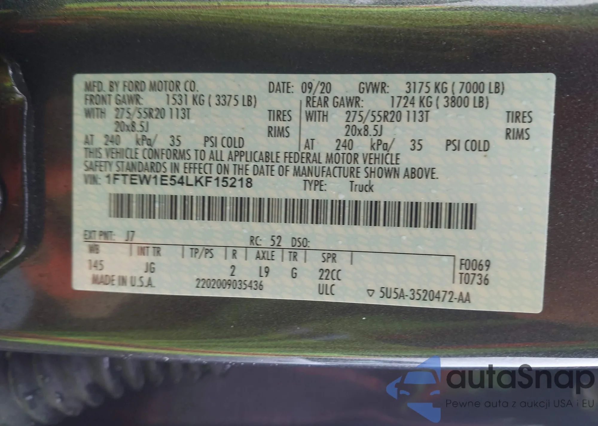 • VIN 5TFAW5F15FX465017