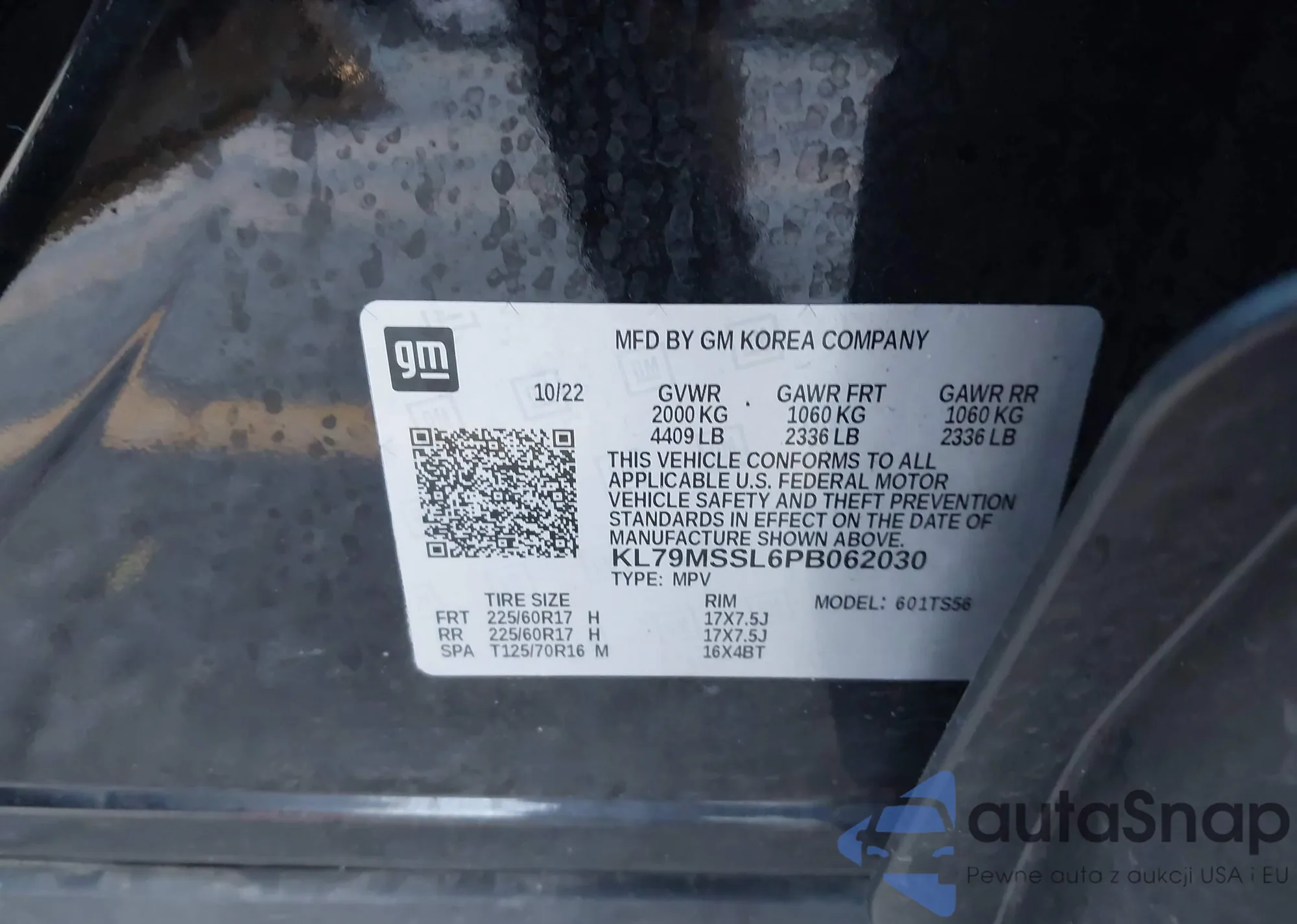 • VIN KL79MSSL6PB062030