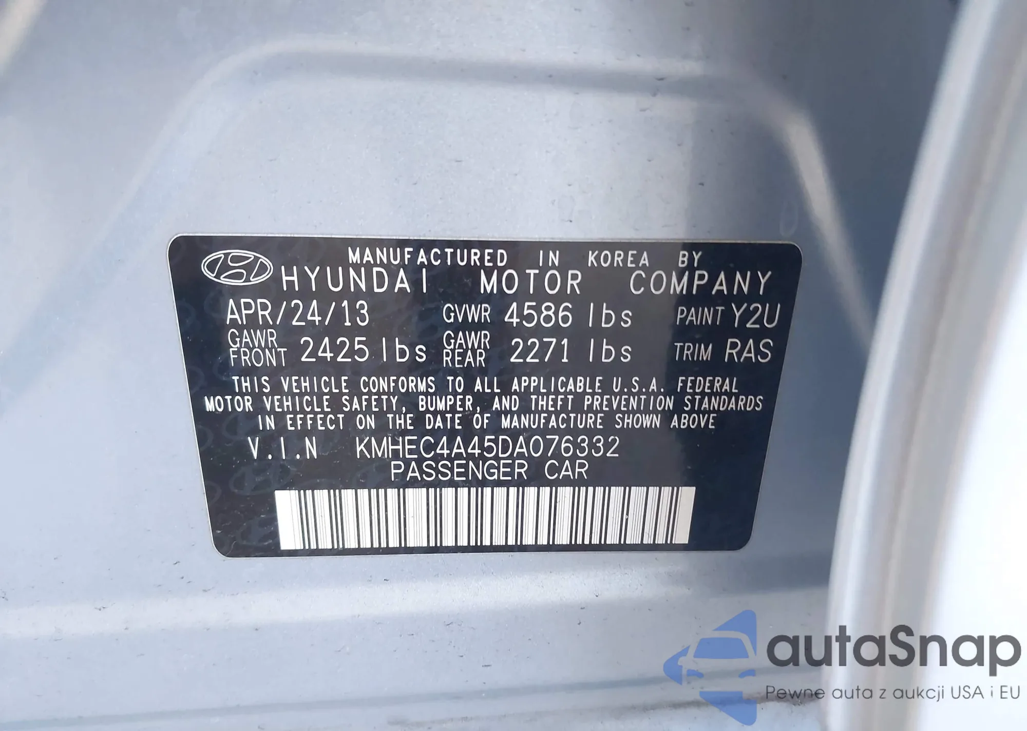 LOT: 43743238 VIN: KMHDU4AD0AU914009