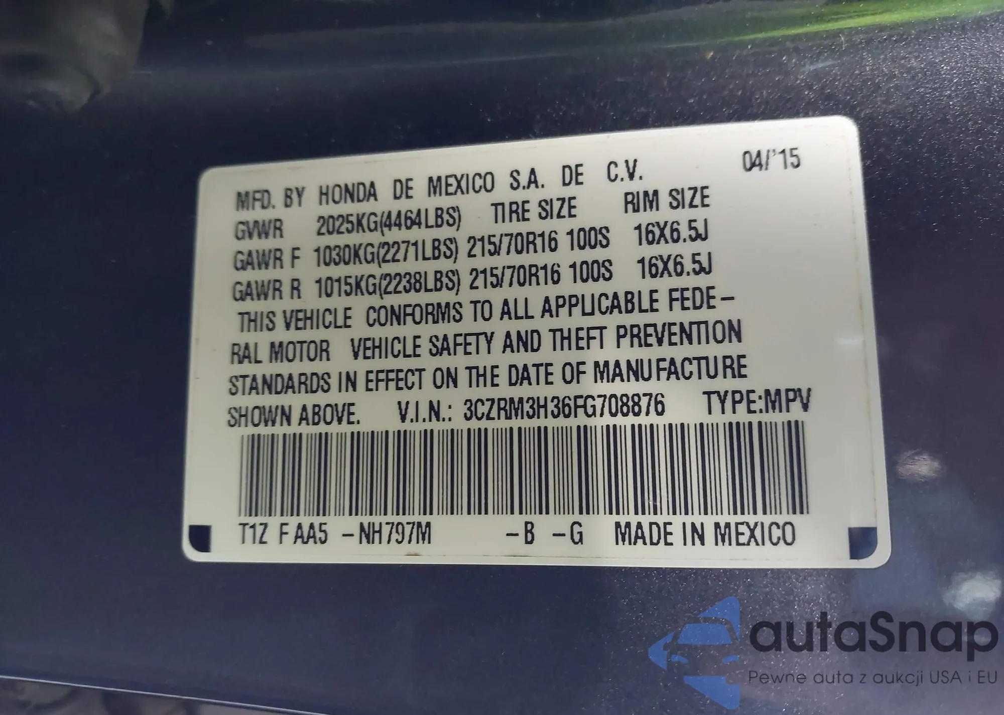 • VIN 3CZRM3H36FG708876