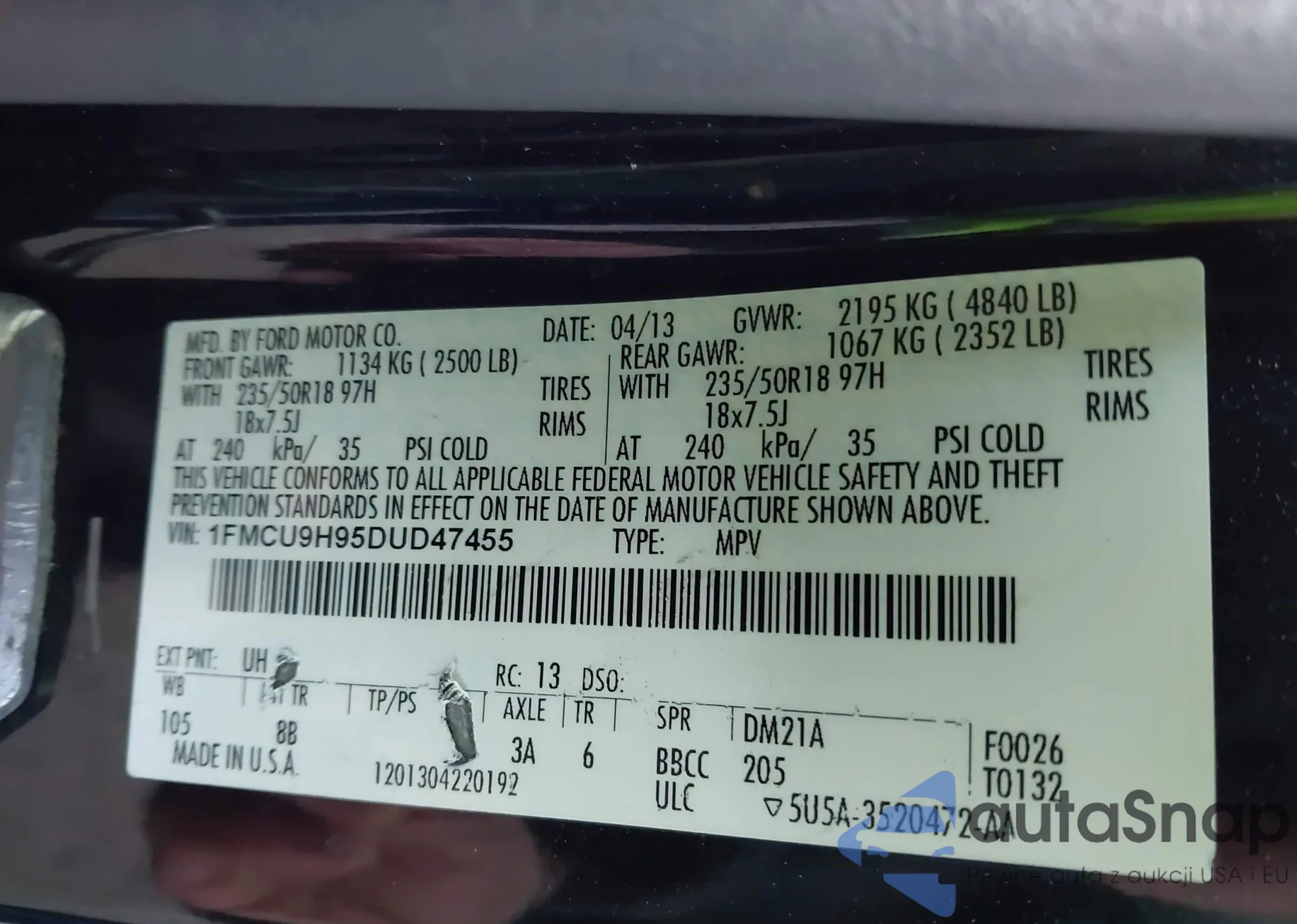 • VIN 5XYZU3LA9DG121126