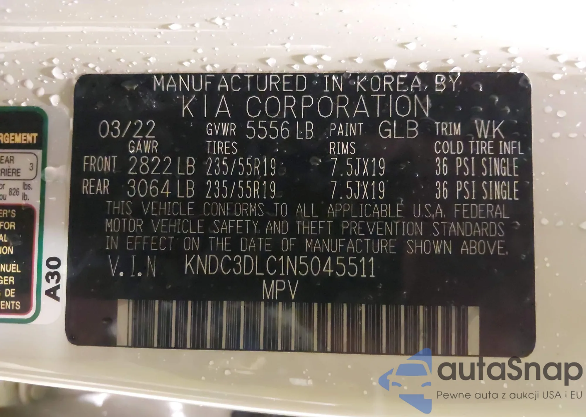LOT: 43814336 VIN: KNDC3DLC1N5045511