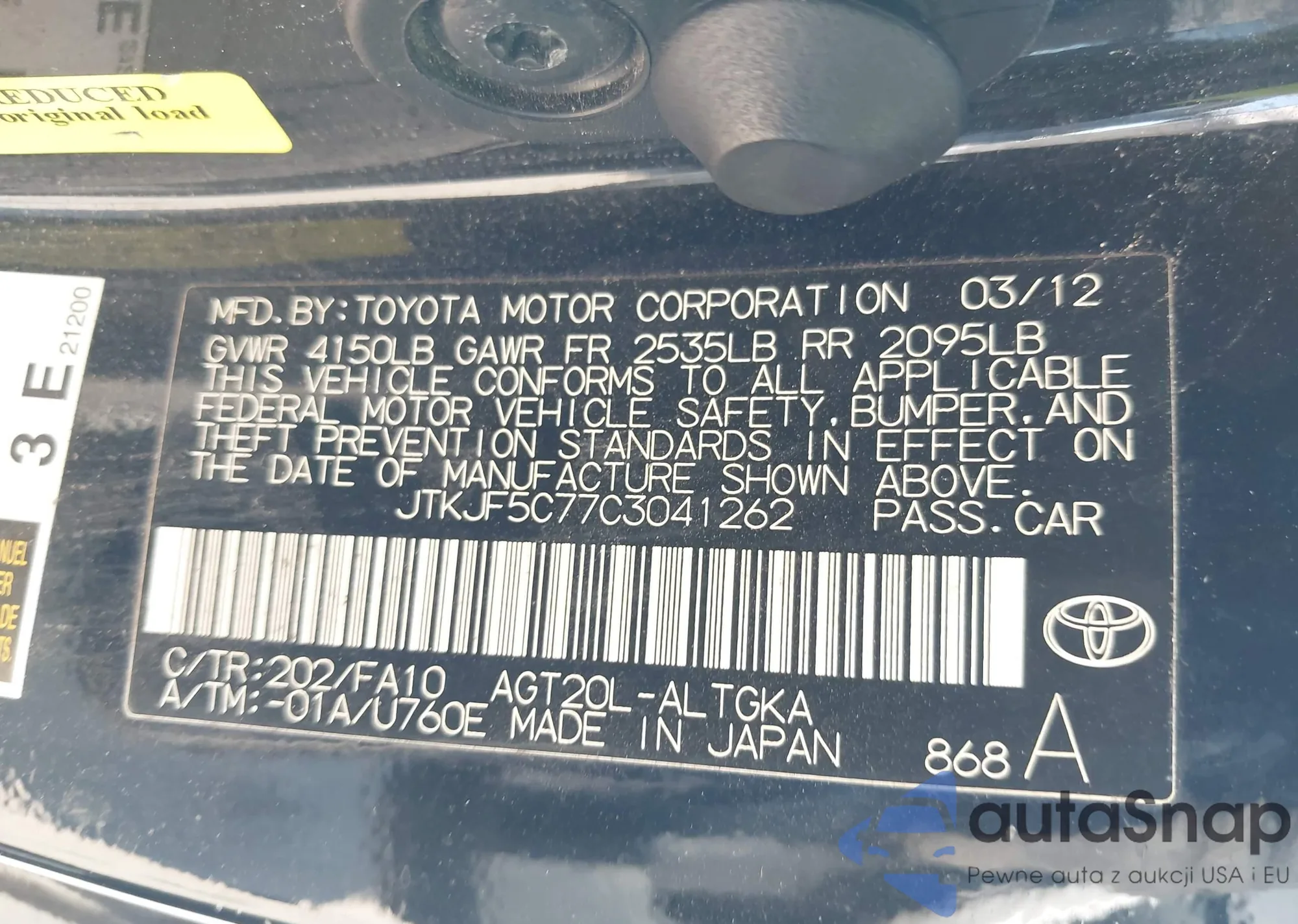 • VIN JTKJF5C77C3041262