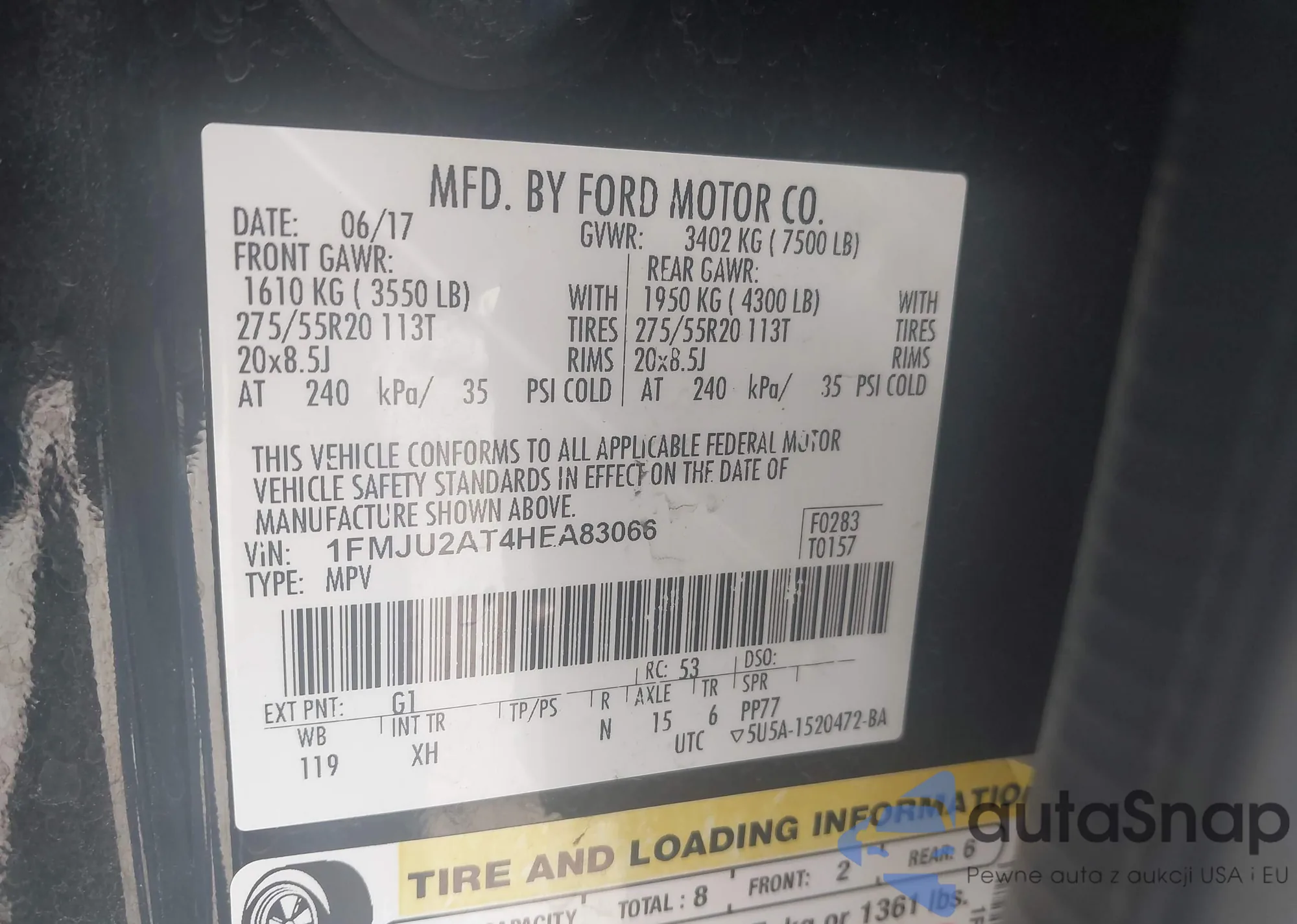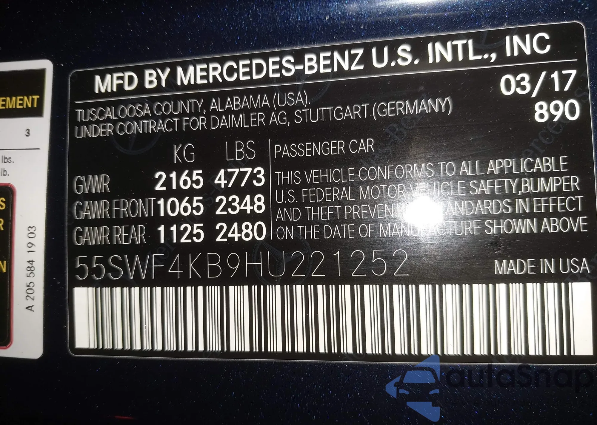 • VIN 55SWF4KB9HU221252