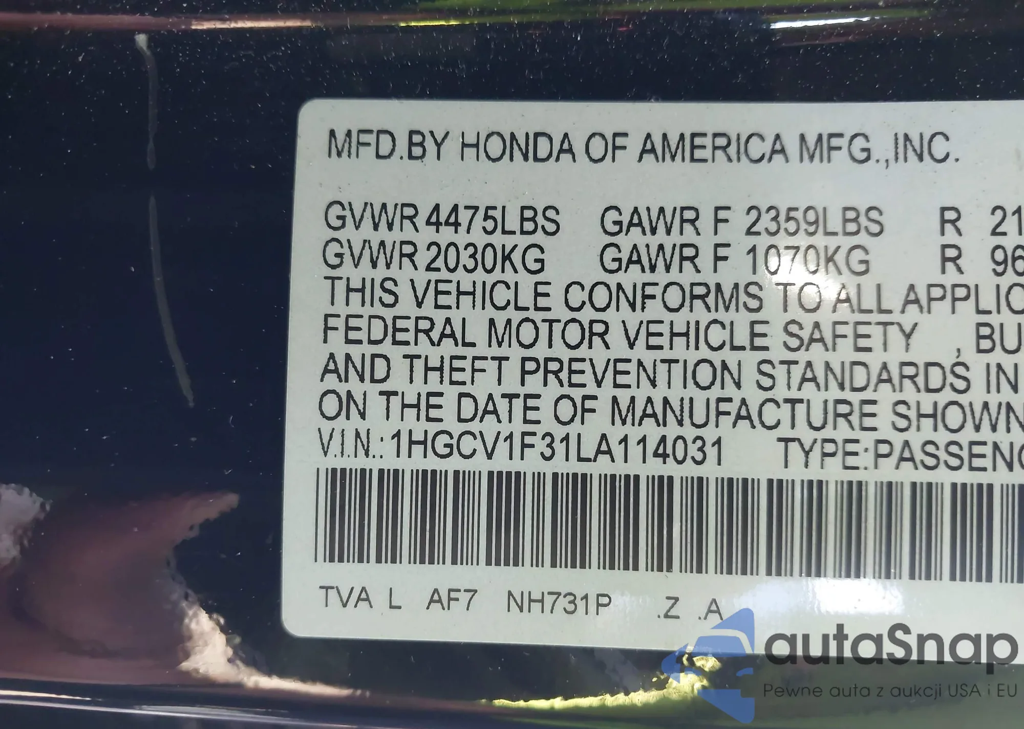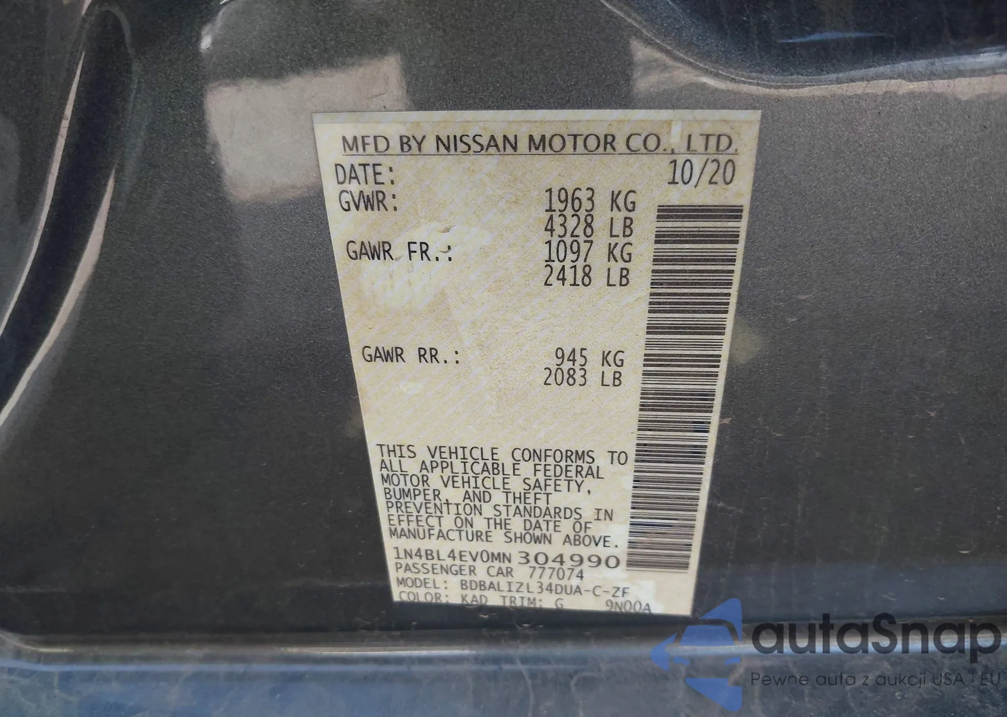 LOT: 43603816 VIN: 1N4BL4EV0MN304990