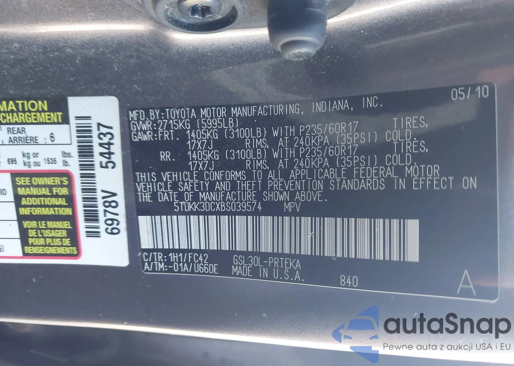 LOT: 43471824 VIN: JTKJF5C77C3041262