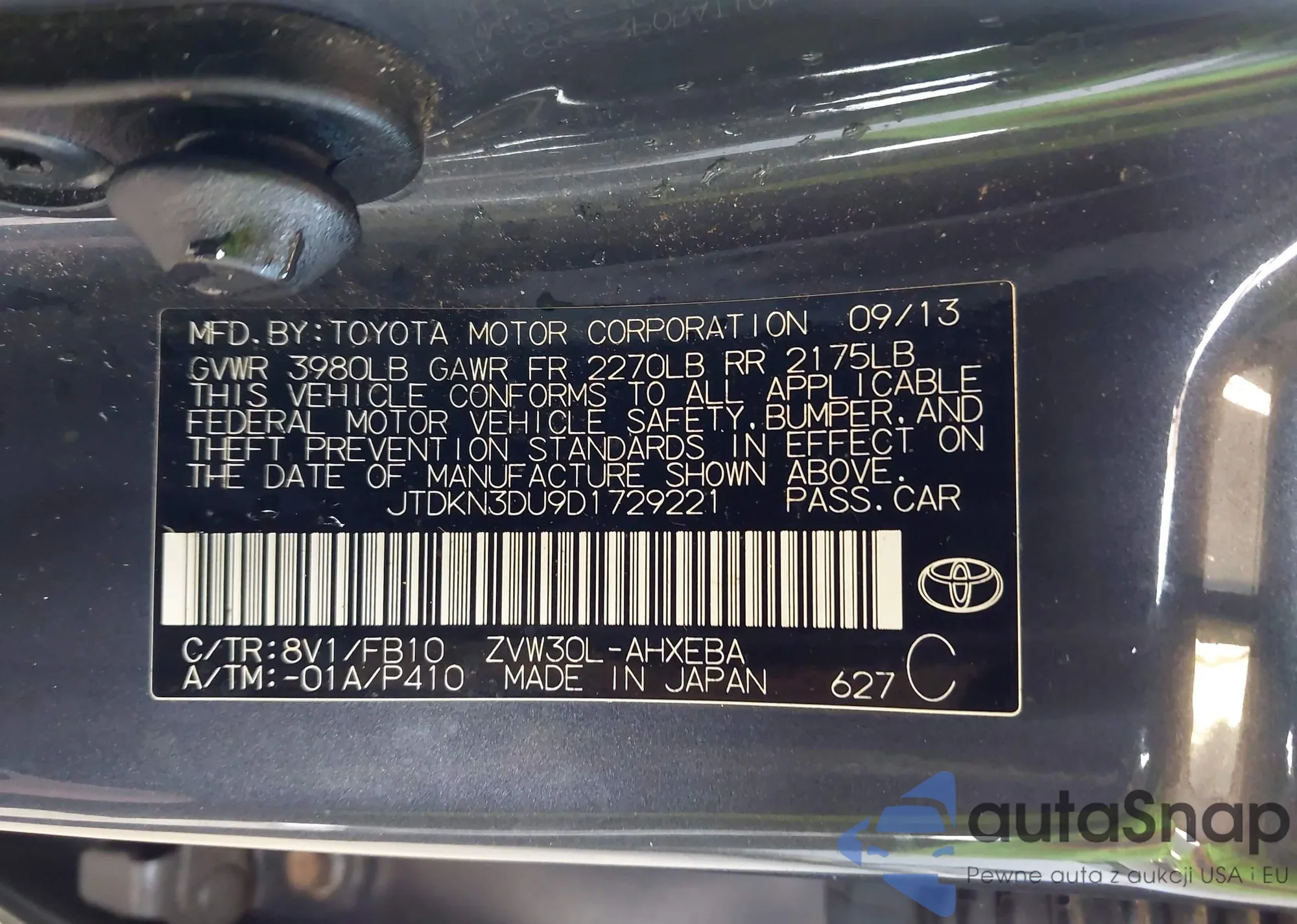 • VIN JTDKN3DU9D1729221
