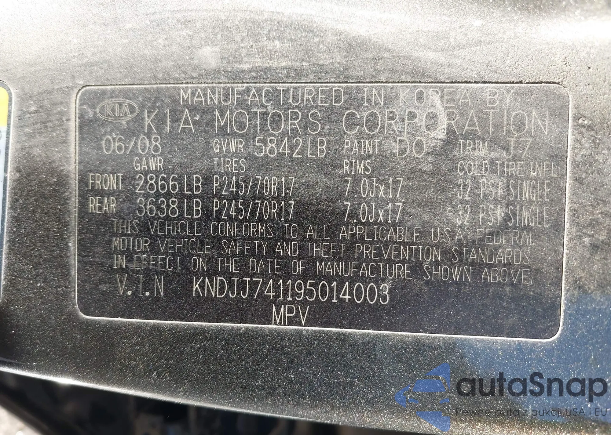 LOT: 43658363 VIN: KNDJJ741195014003