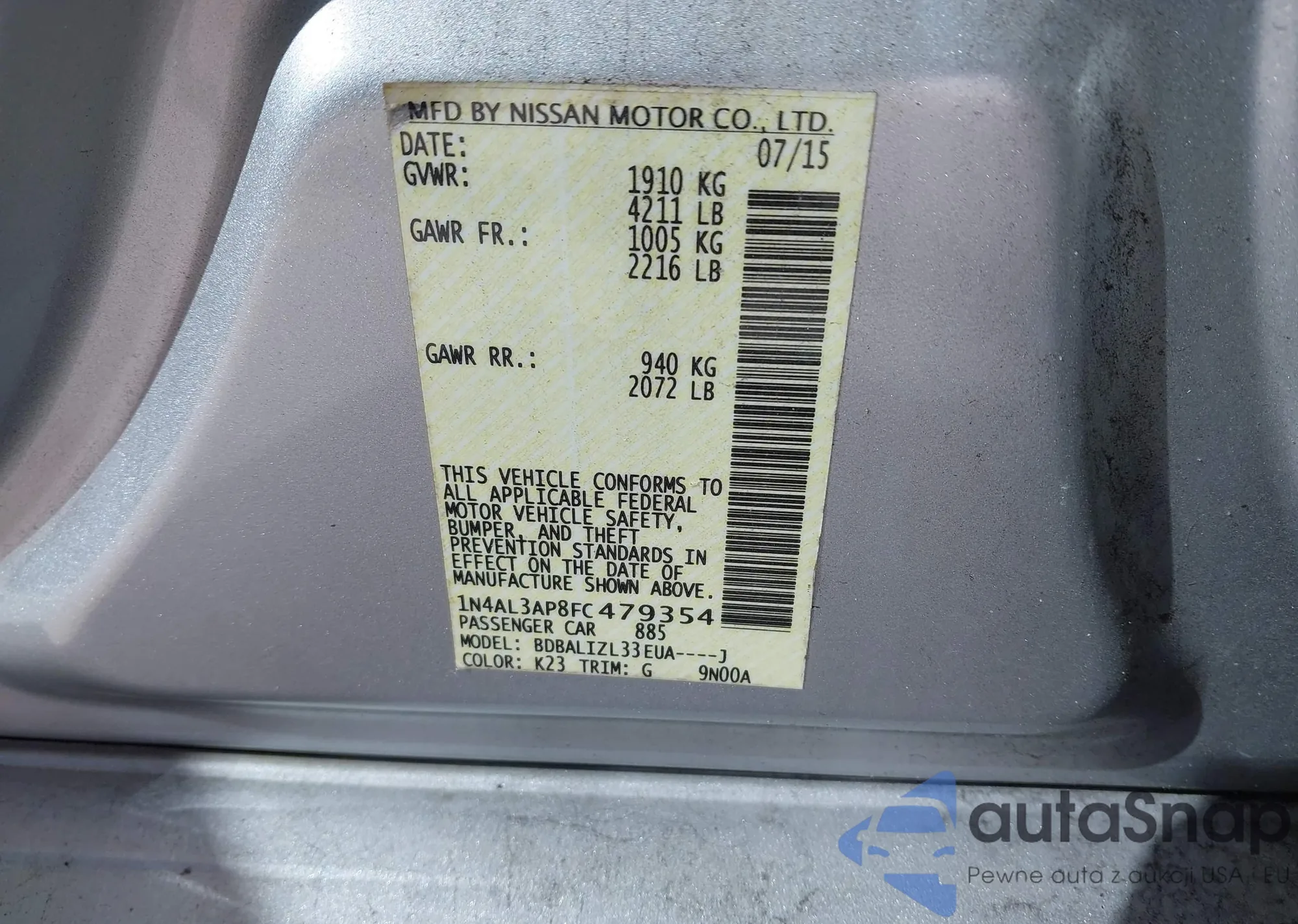 • VIN 1N4AL3AP8FC479354