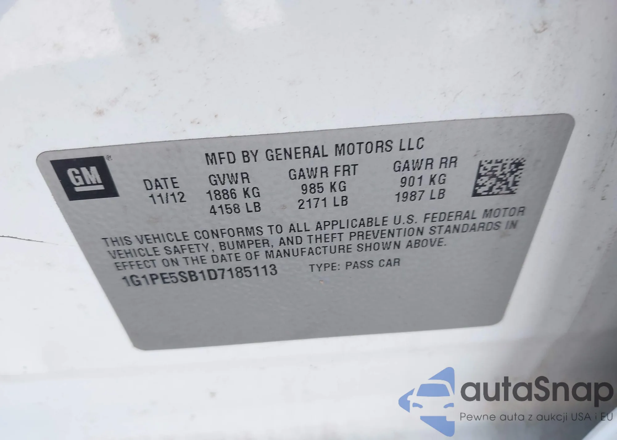 • VIN 1G1PE5SB1D7185113