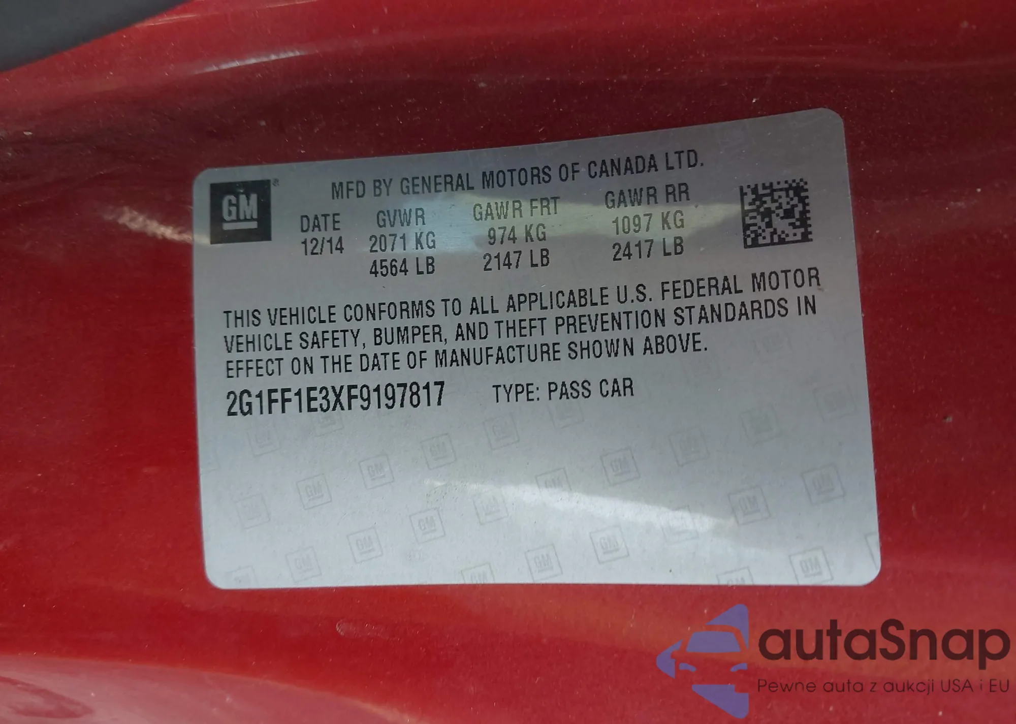 LOT: 43484618 VIN: 2G1FF1E3XF9197817