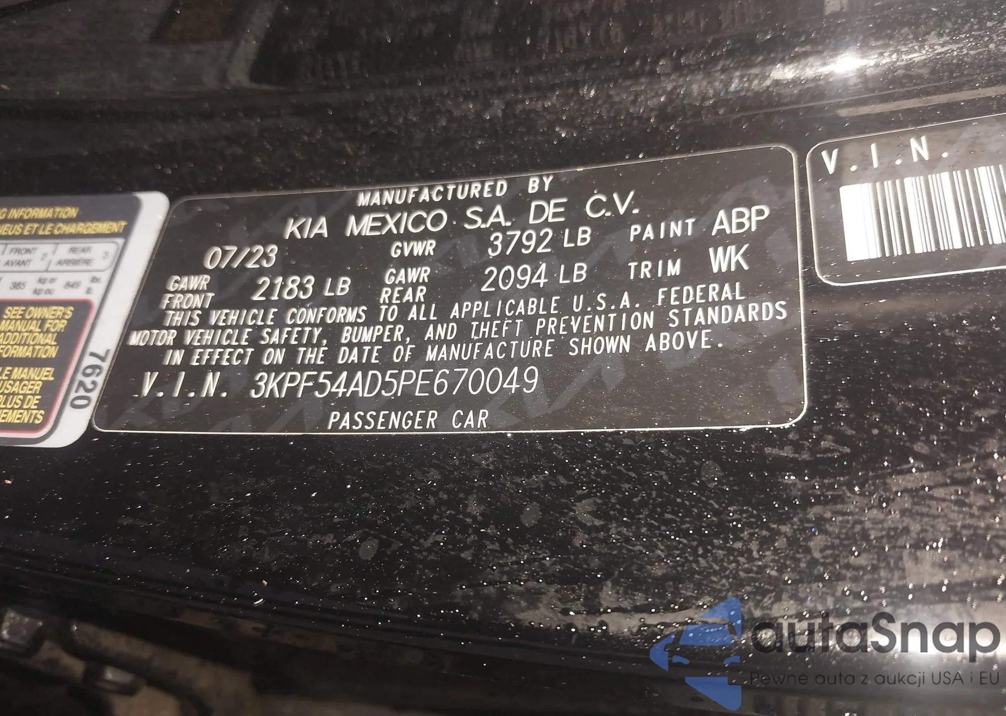 • VIN 3KPF54AD5PE670049