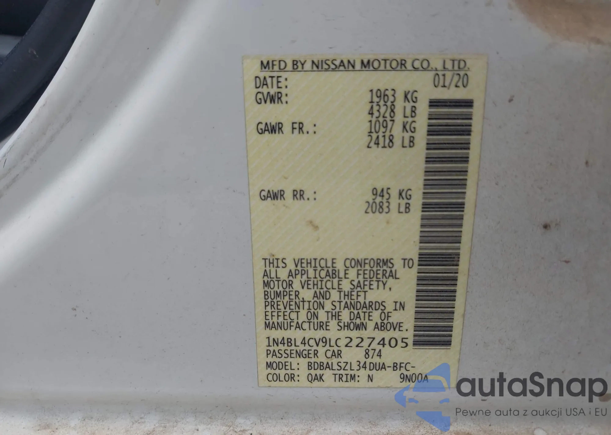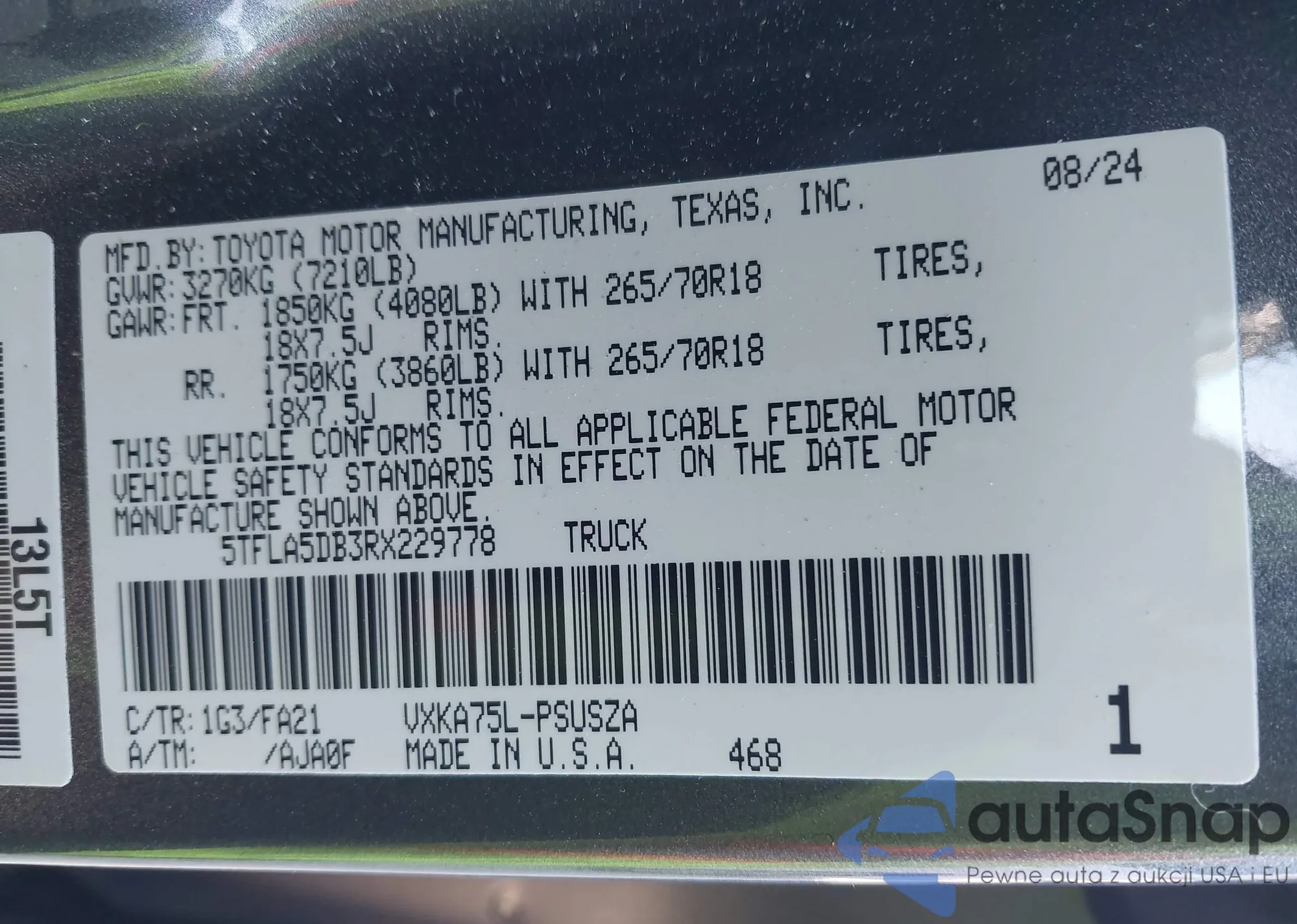 LOT: 43504159 VIN: 58ACZ1B18SU202650