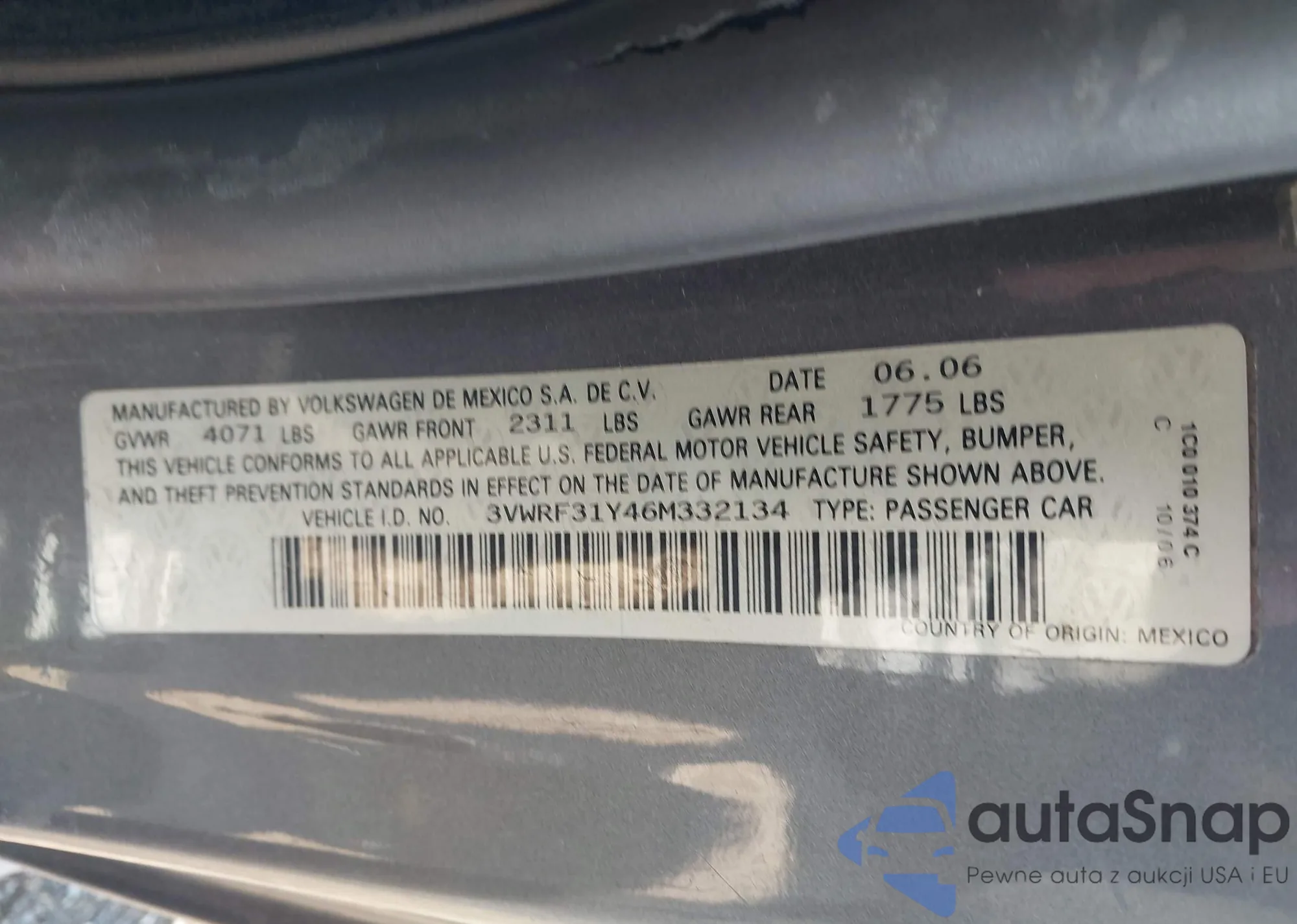 • VIN 3VWRF31Y46M332134