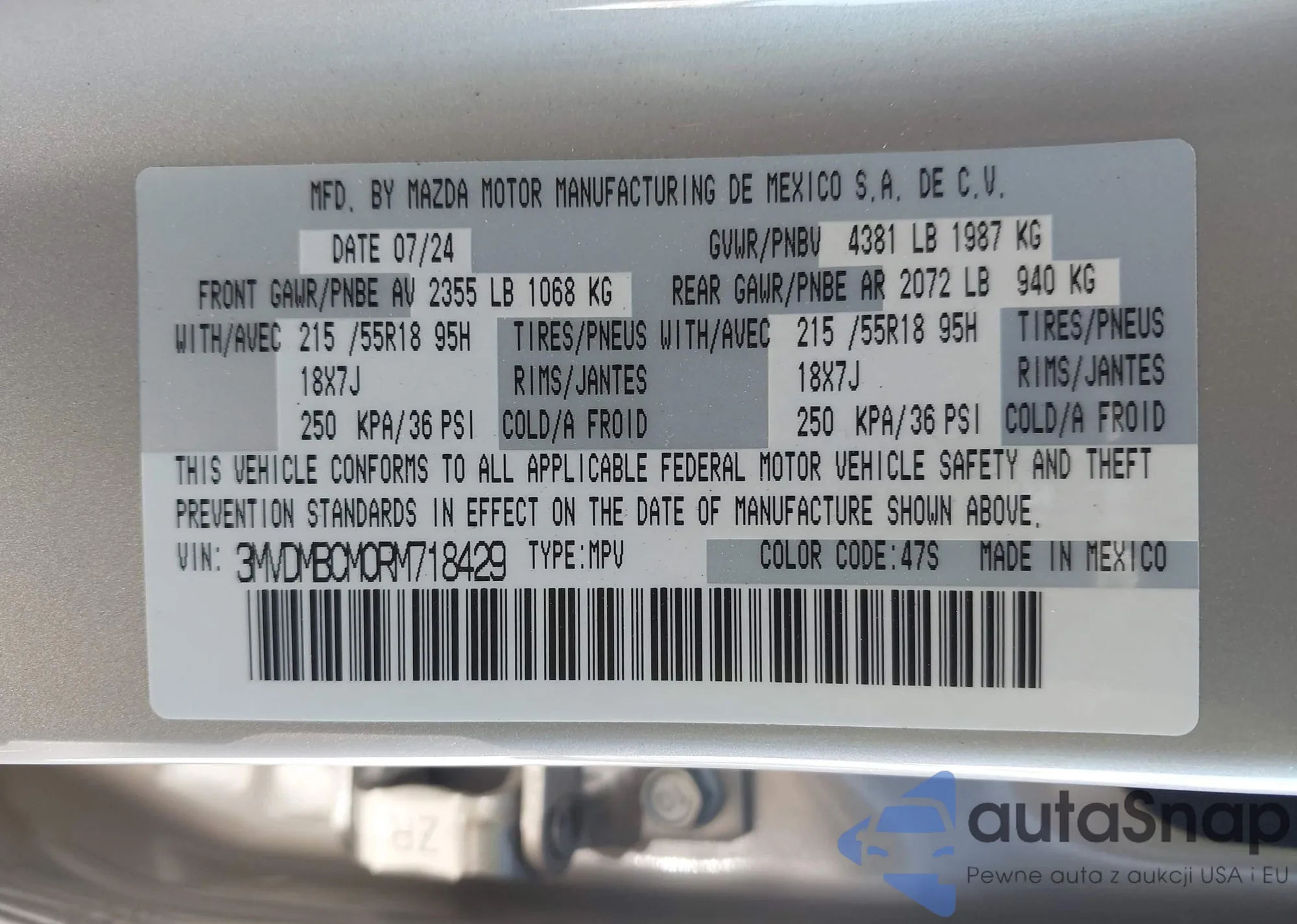• VIN 3MVDMBCM0RM718429