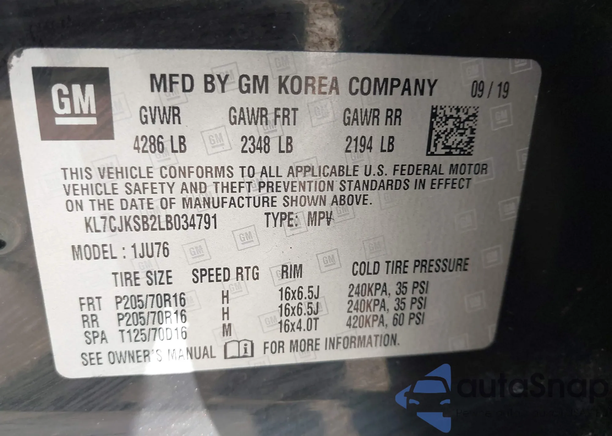 • VIN KL7CJKSB2LB034791