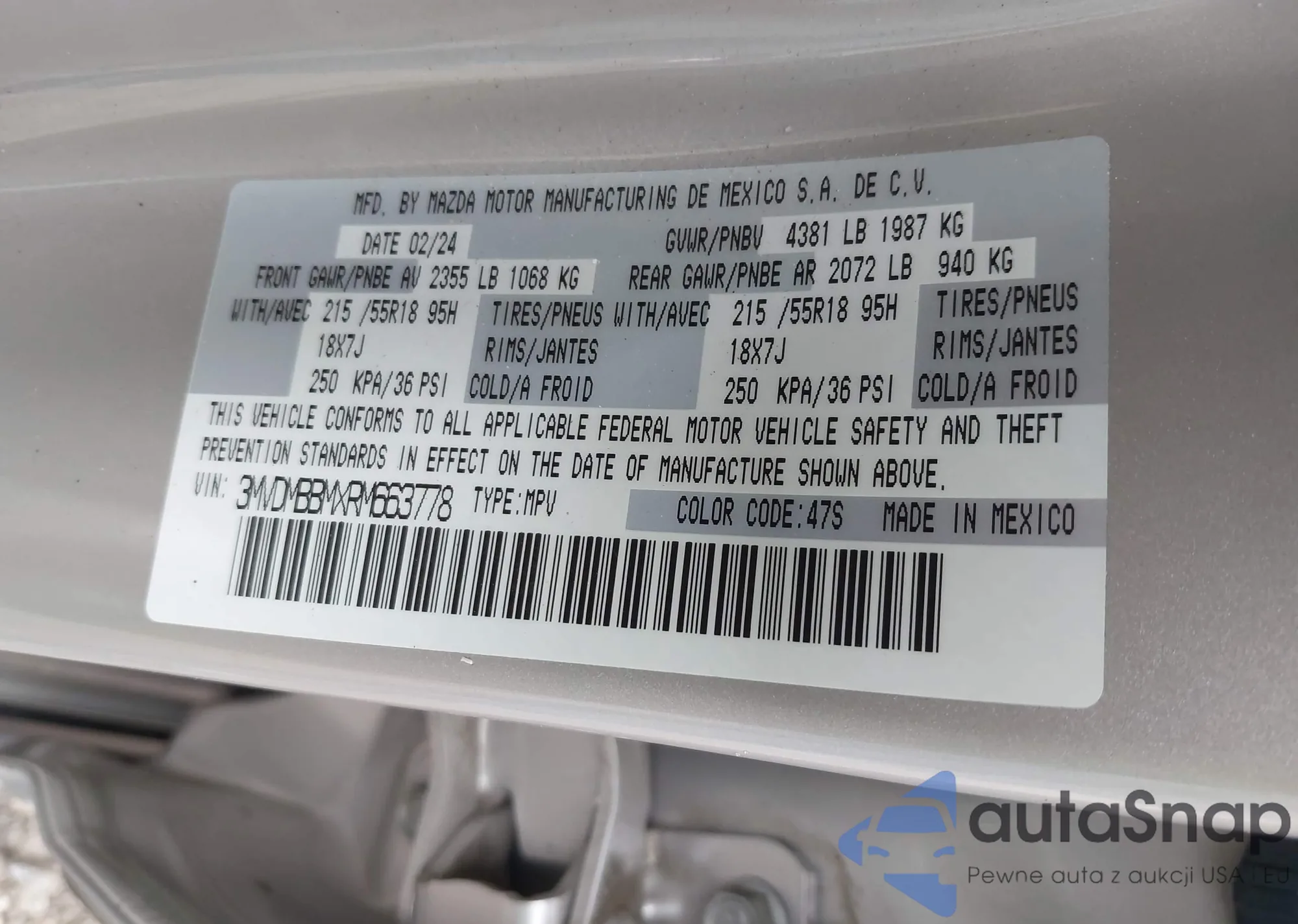 • VIN 3MVDMBBMXRM663778