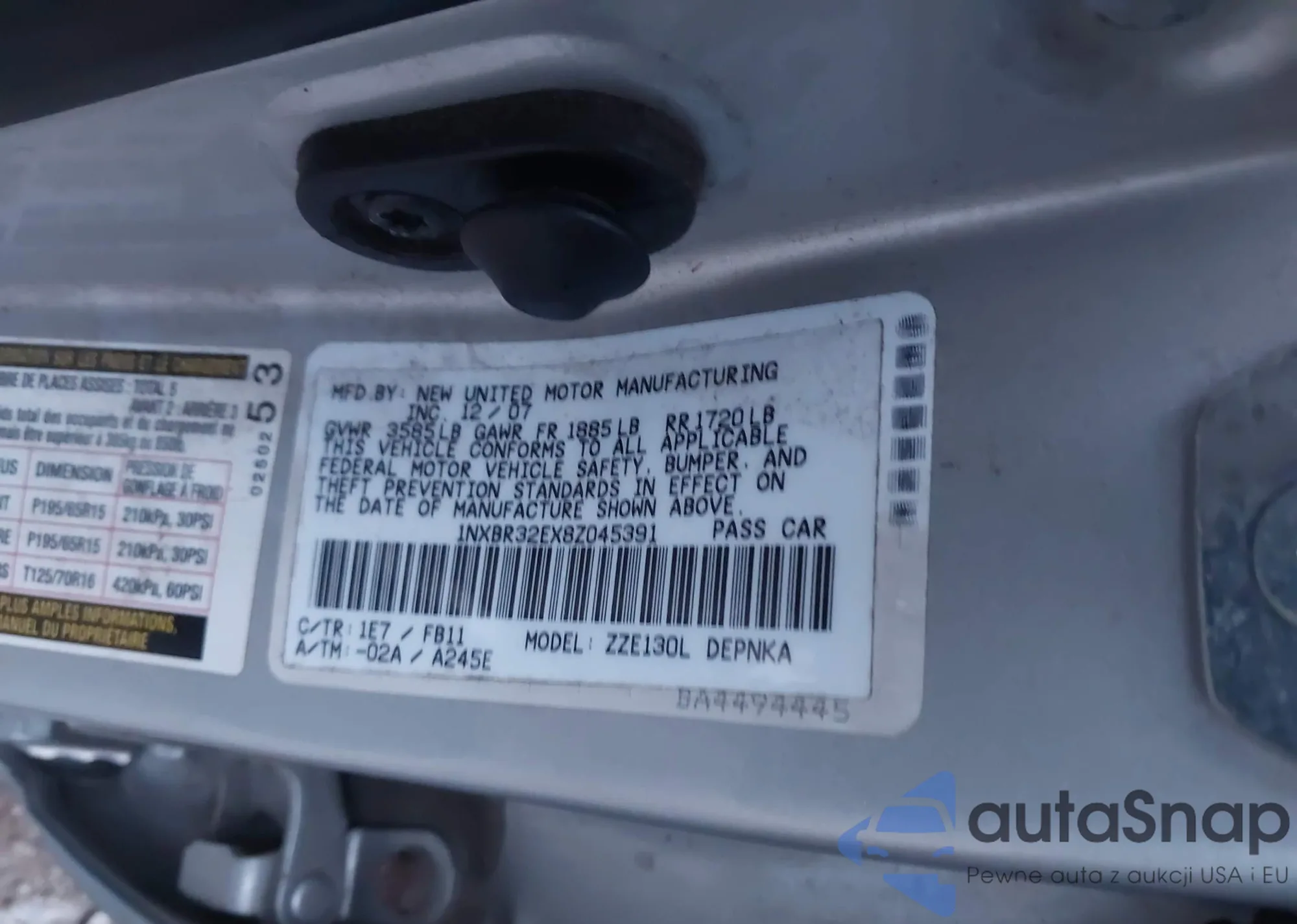 • VIN 1NXBR32EX8Z045391