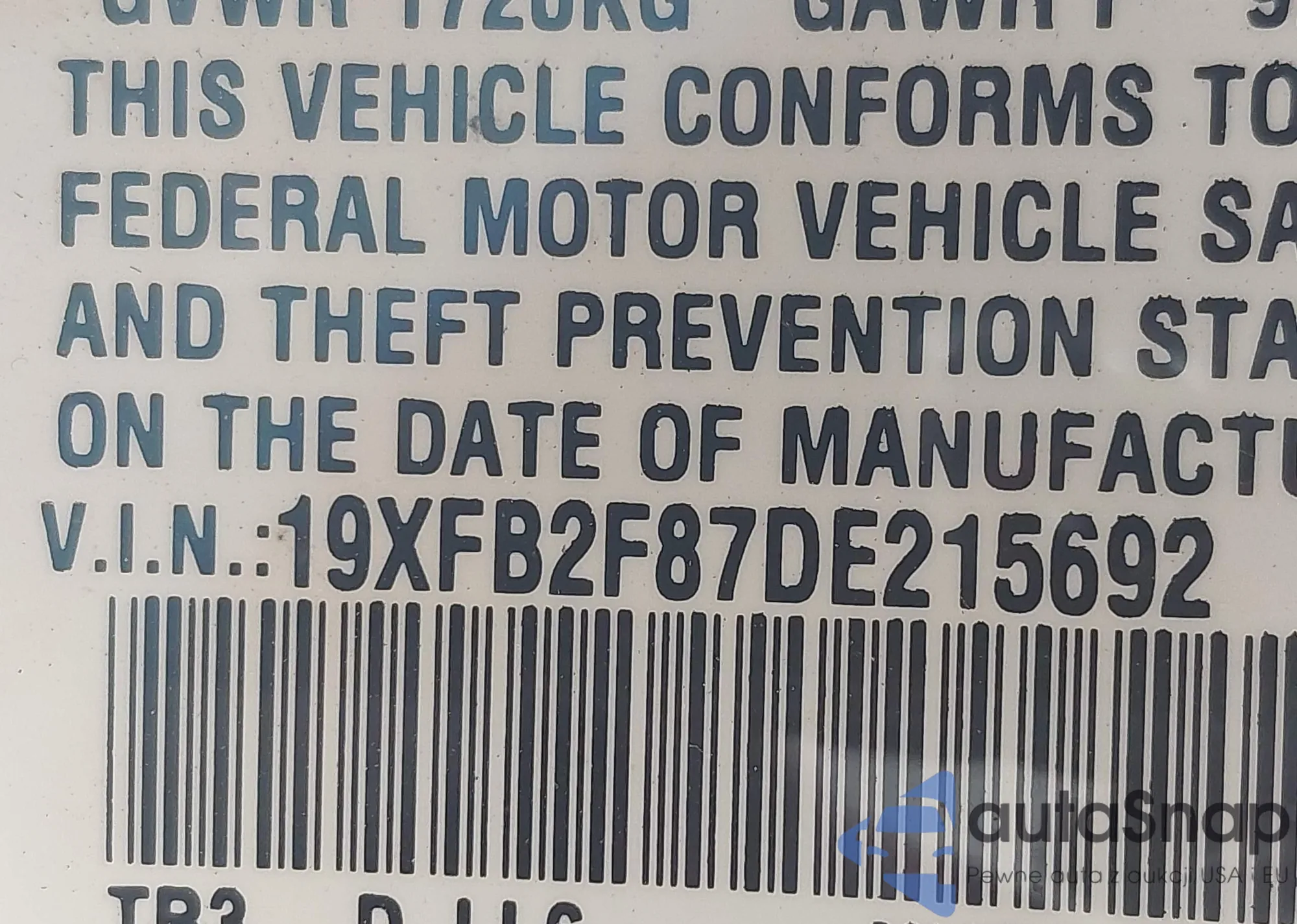 • VIN 19XFB2F87DE215692