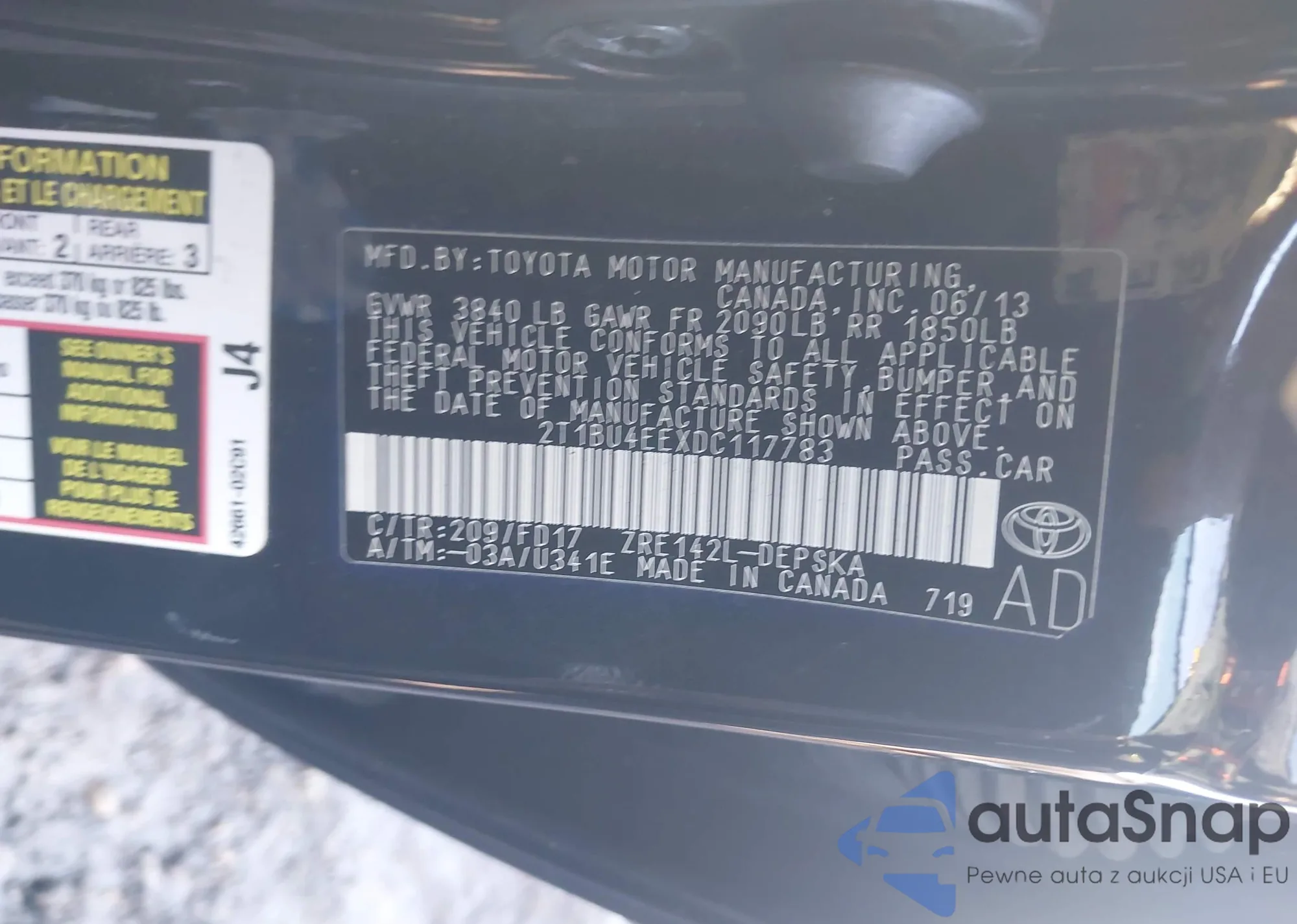 • VIN 2T1BU4EEXDC117783