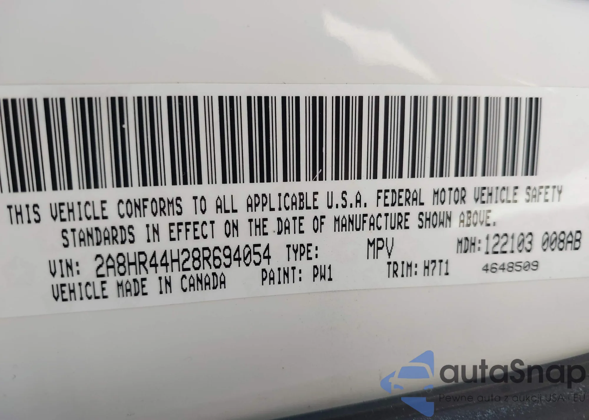 LOT: 43463709 VIN: 2A8HR44H28R694054