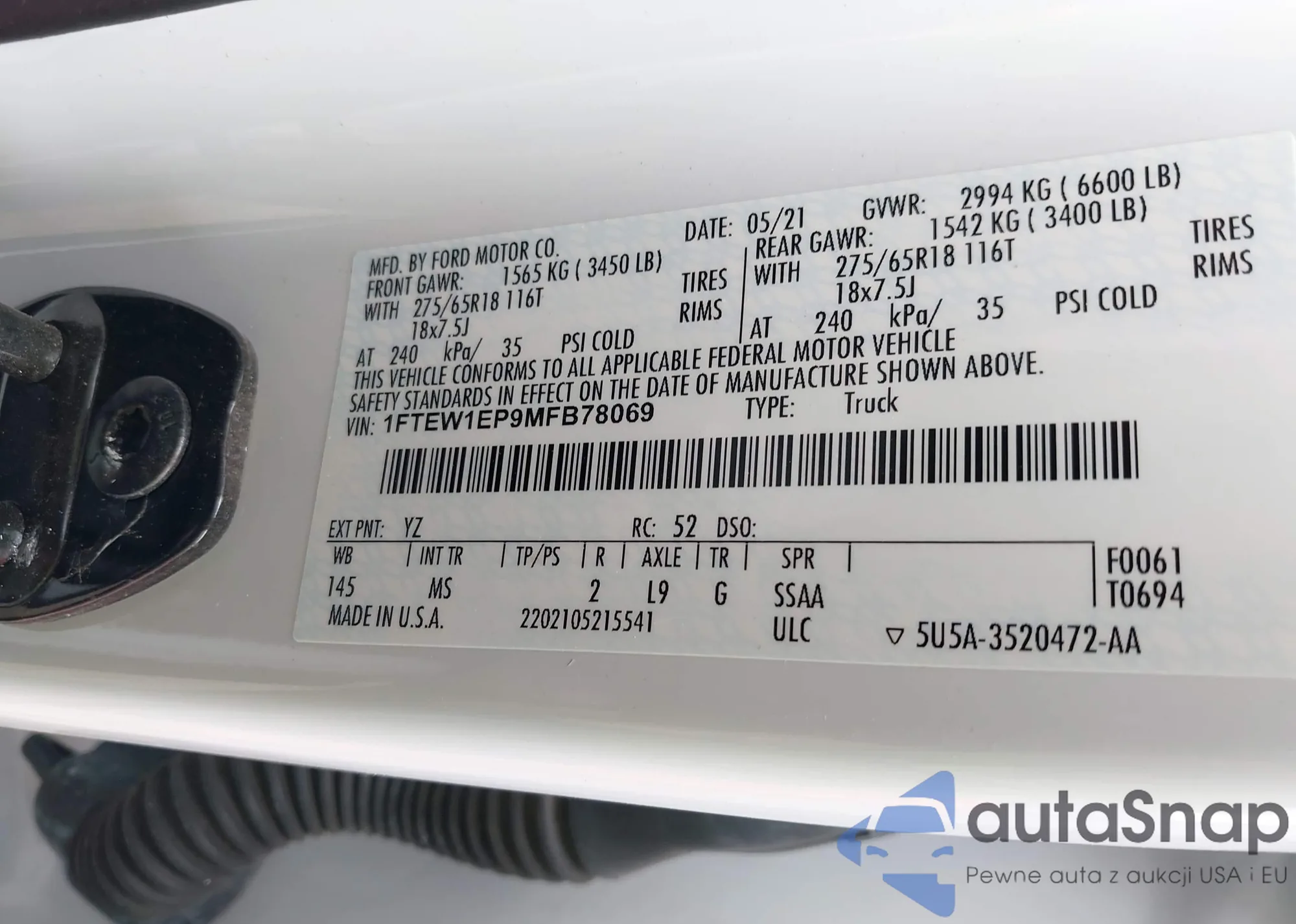 LOT: 43119453 VIN: 1FTEW1EP9MFB78069