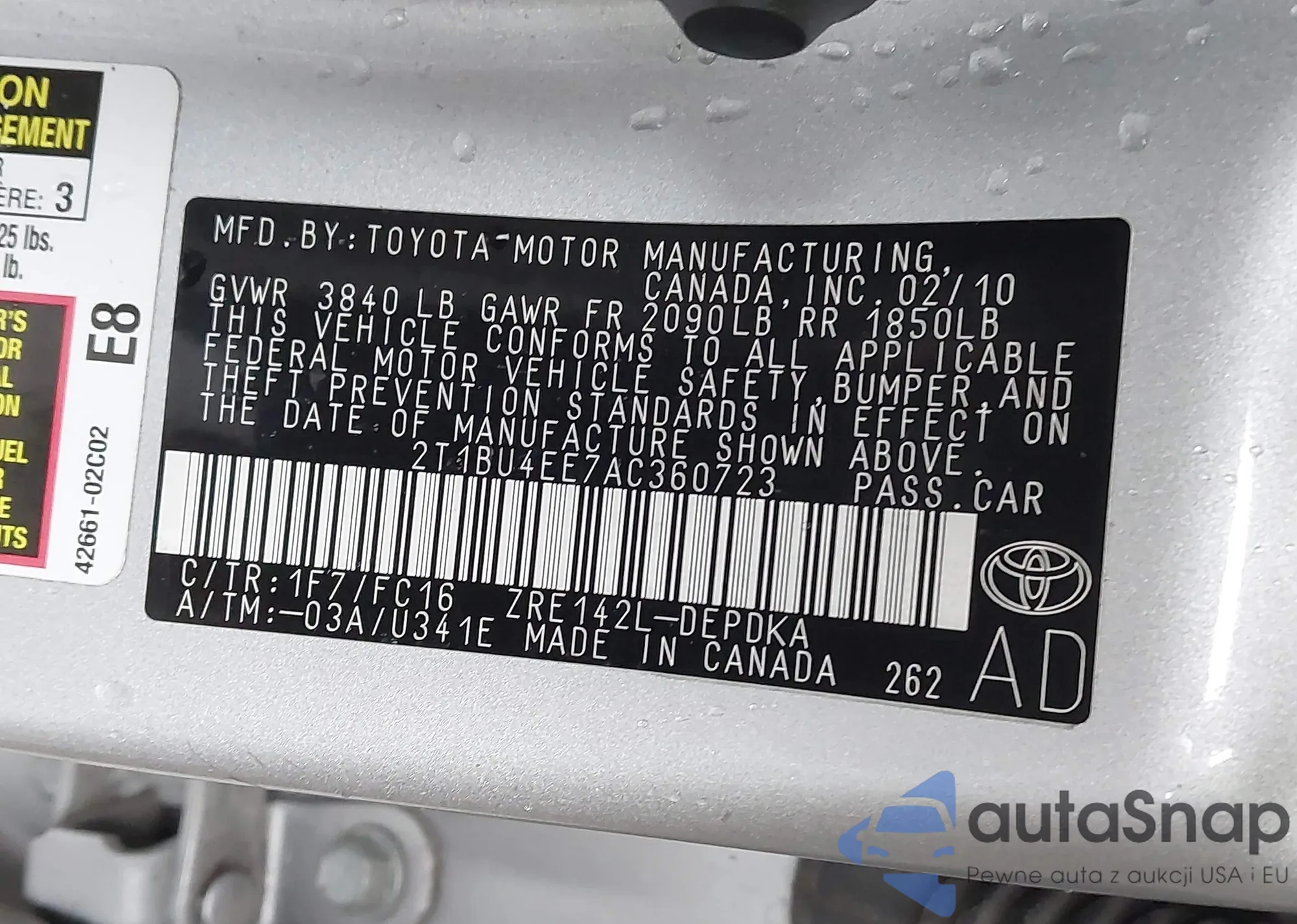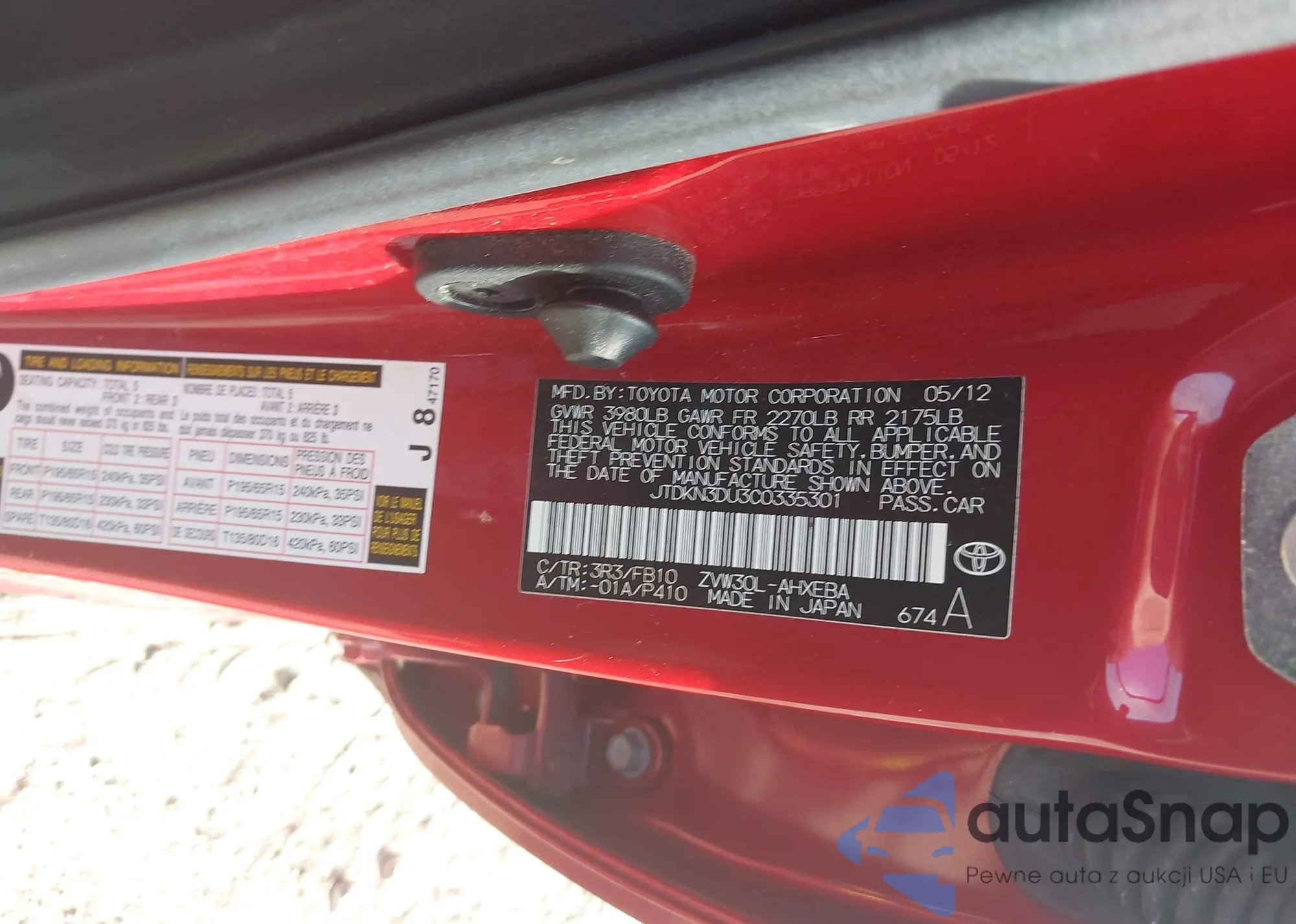 LOT: 43806878 VIN: JTDKN3DU3C0335301