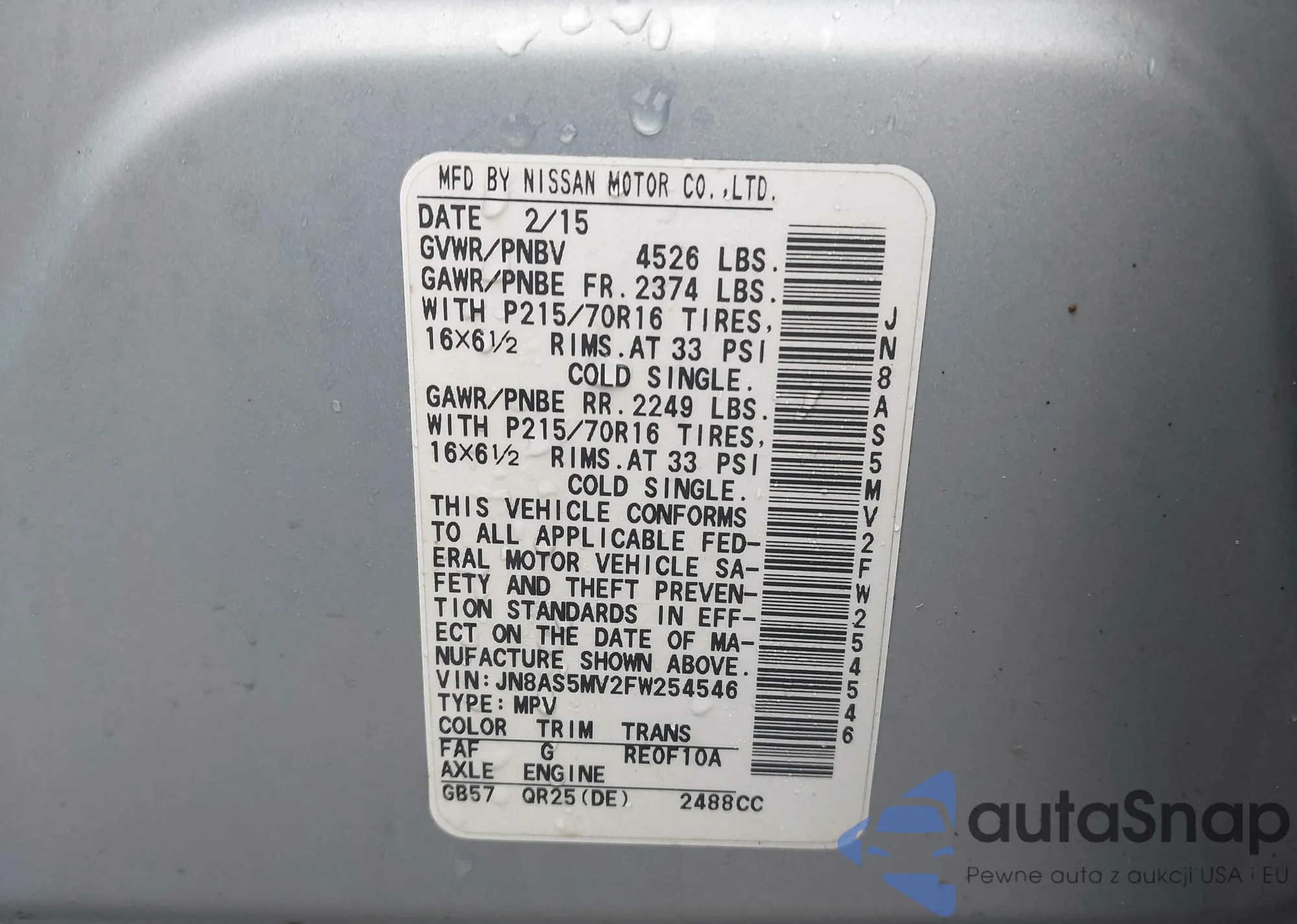 • VIN JN8AS5MV2FW254546