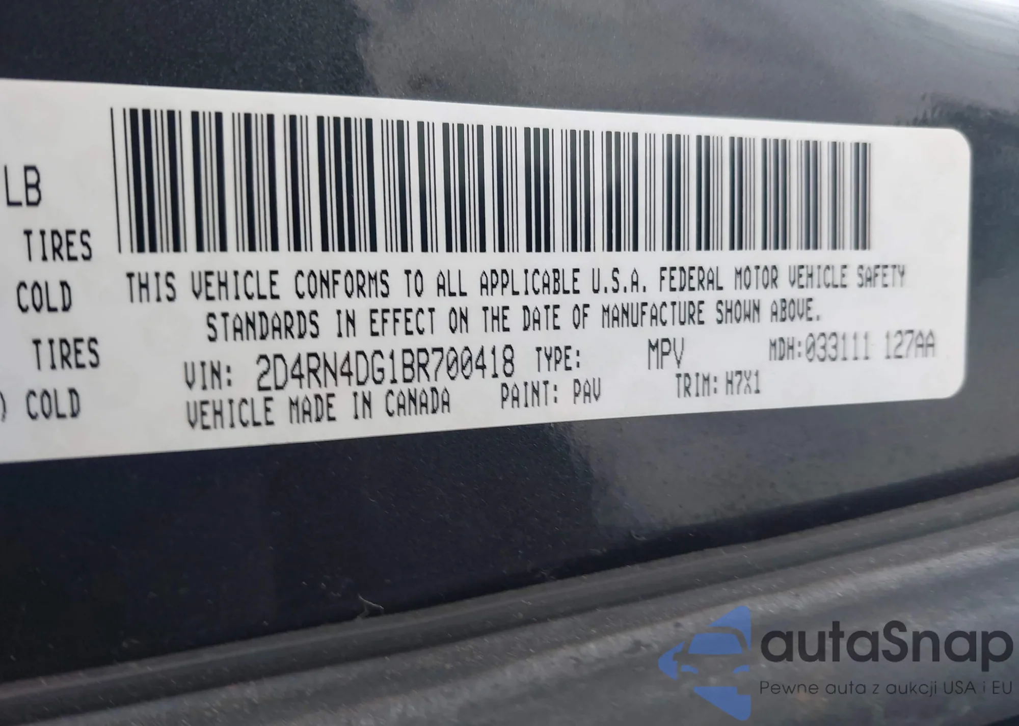 • VIN 2D4RN4DG1BR700418
