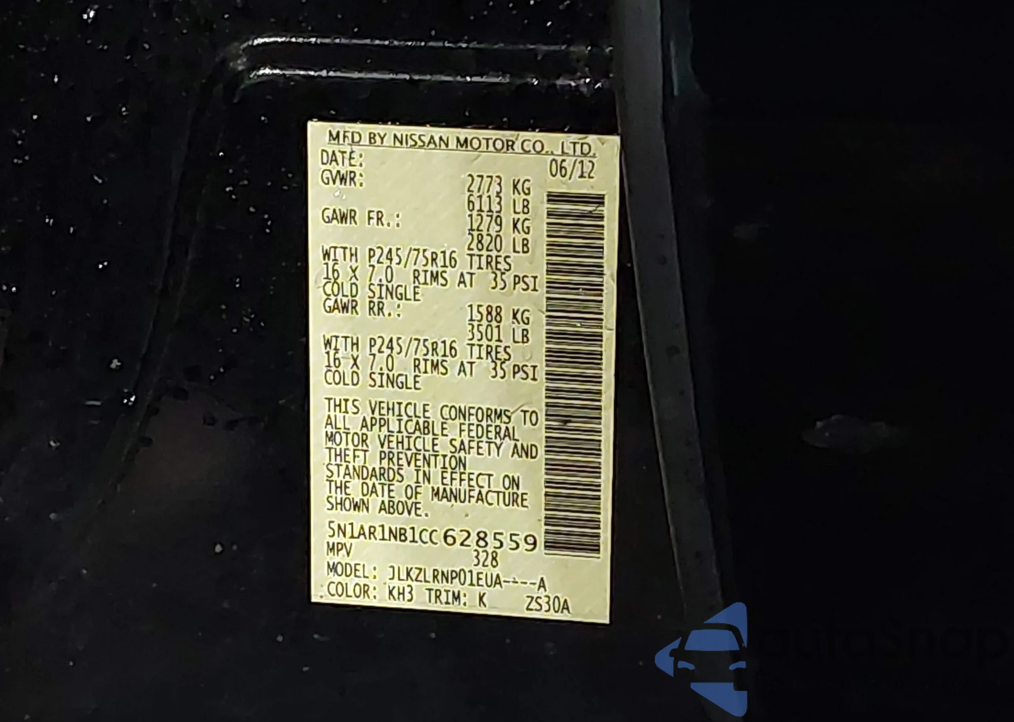 • VIN 5N1AR1NB1CC628559