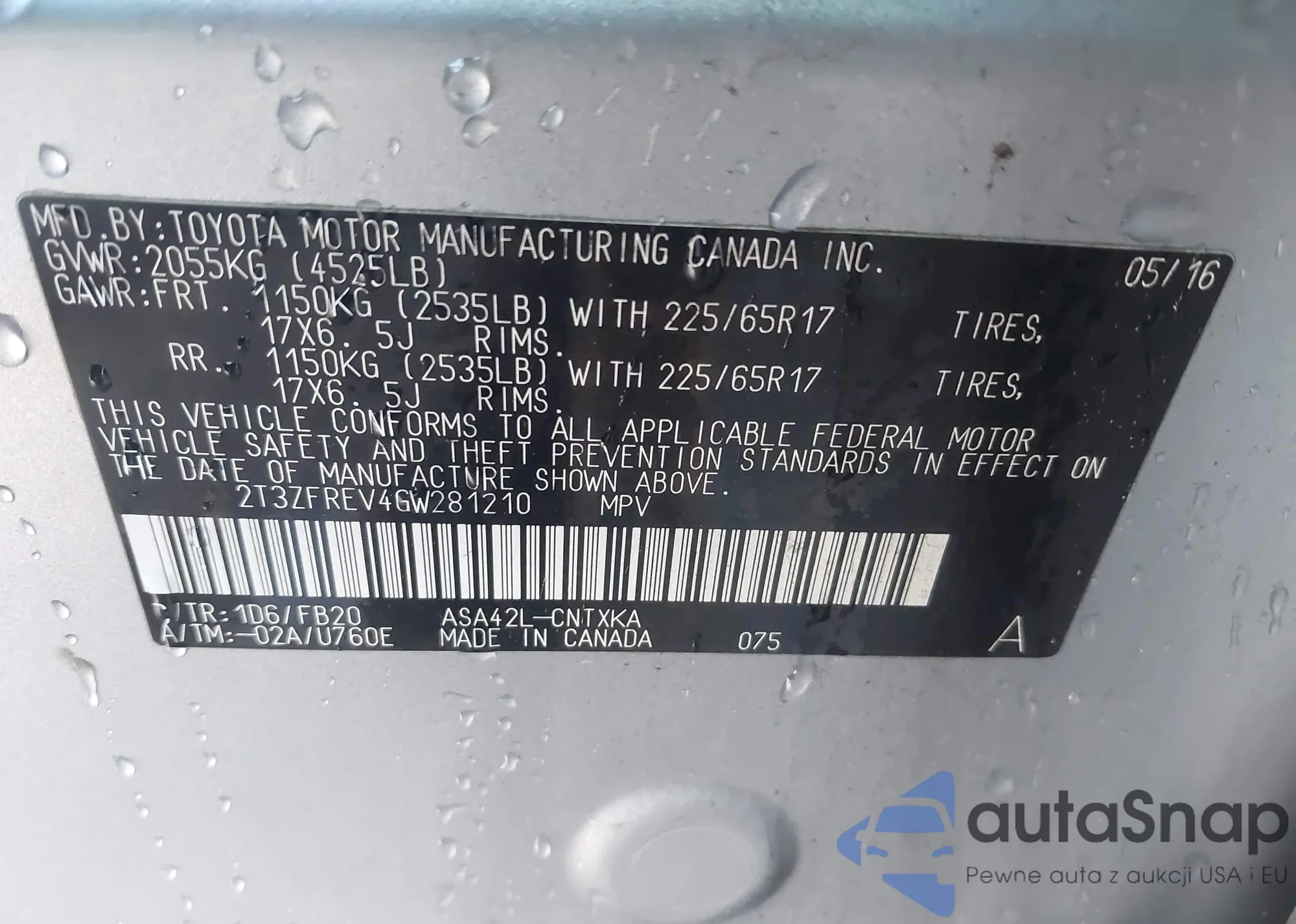 • VIN 2T3ZFREV4GW281210