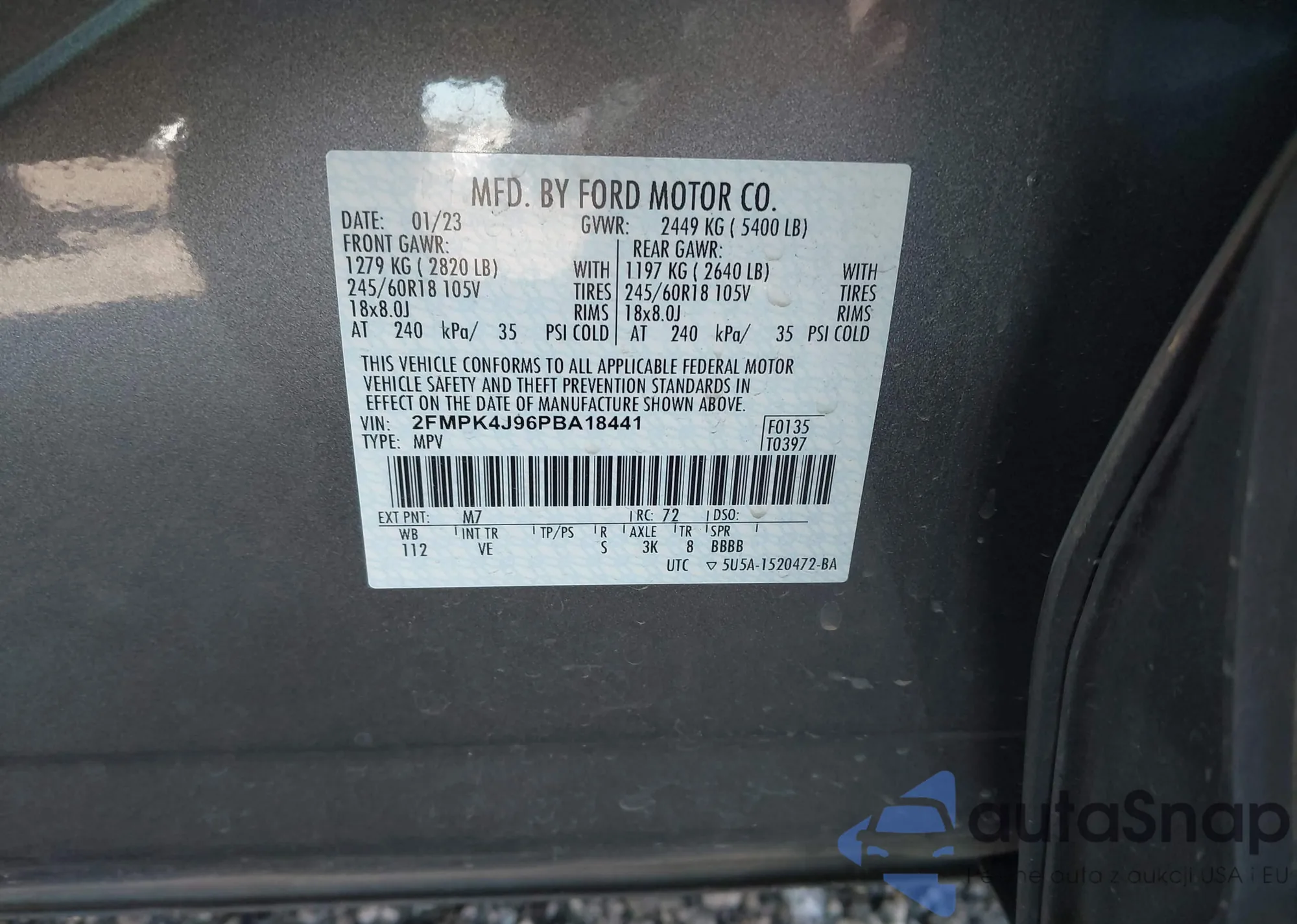 LOT: 43551176 VIN: 2FMPK4J96PBA18441