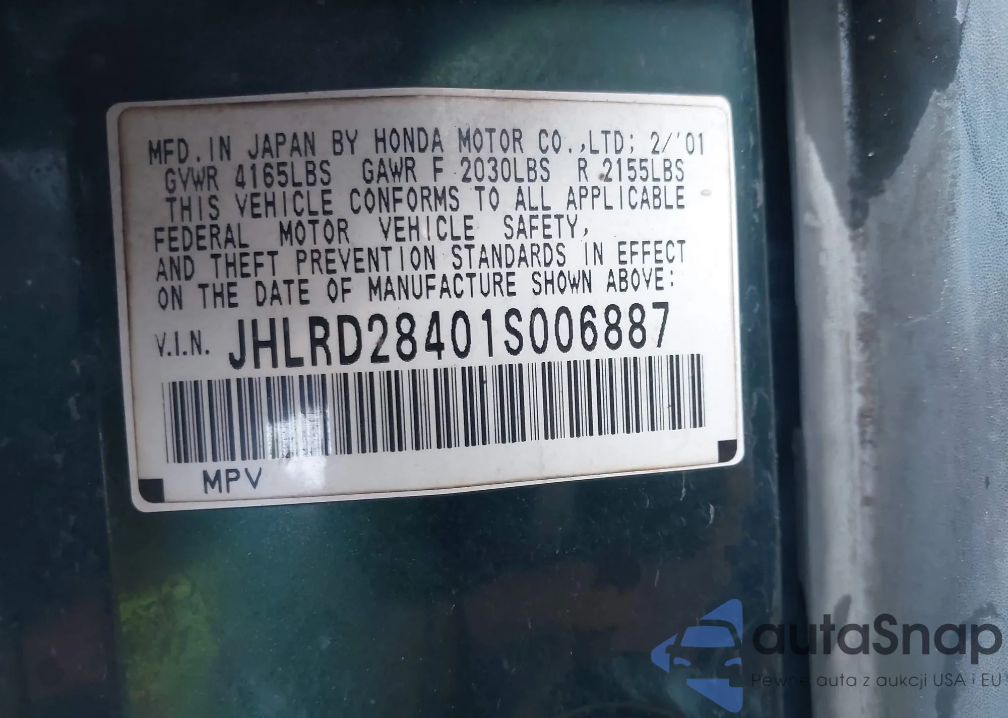 • VIN JHLRD1854VC044965