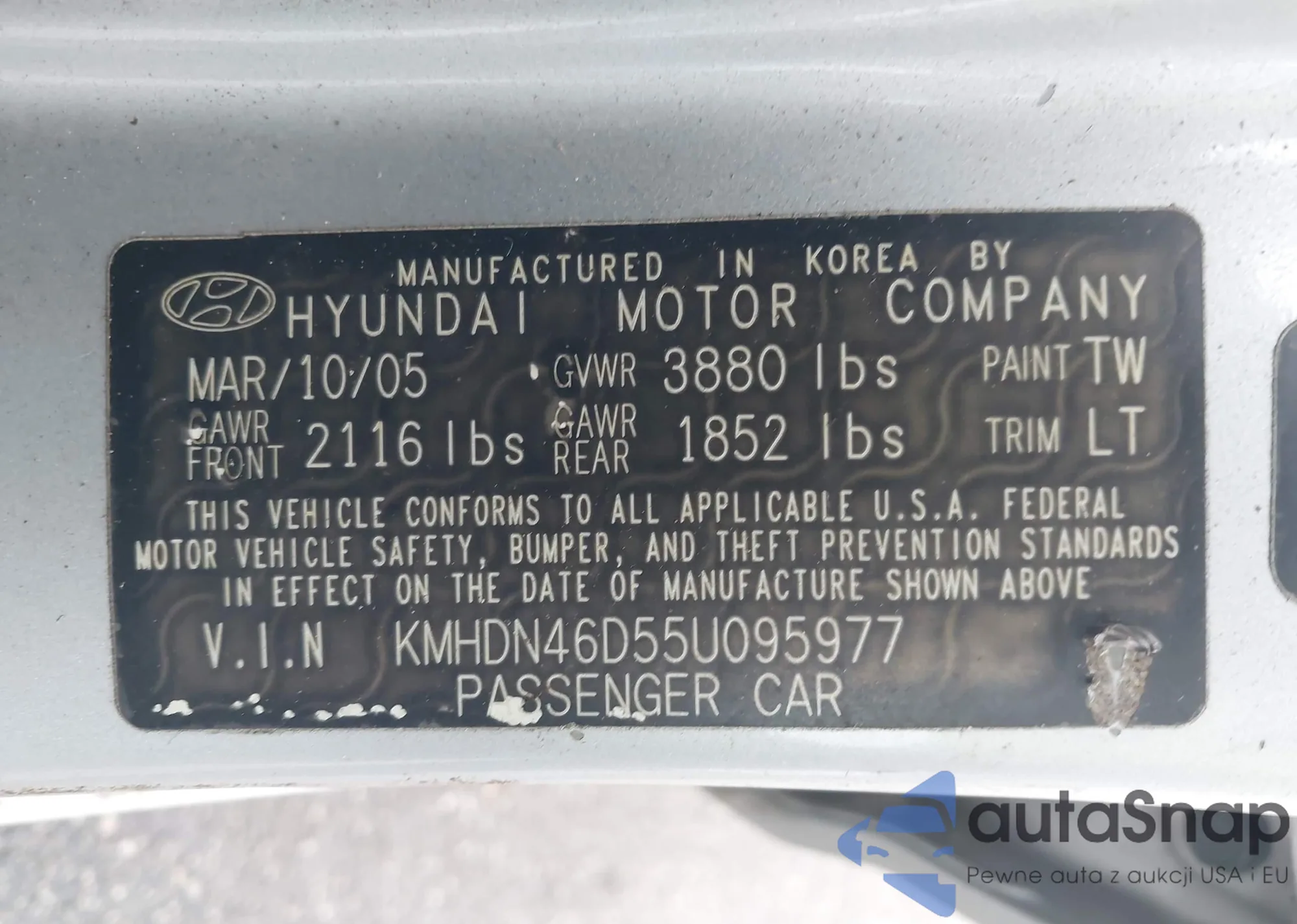 LOT: 43924840 VIN: KMHDN46D55U095977