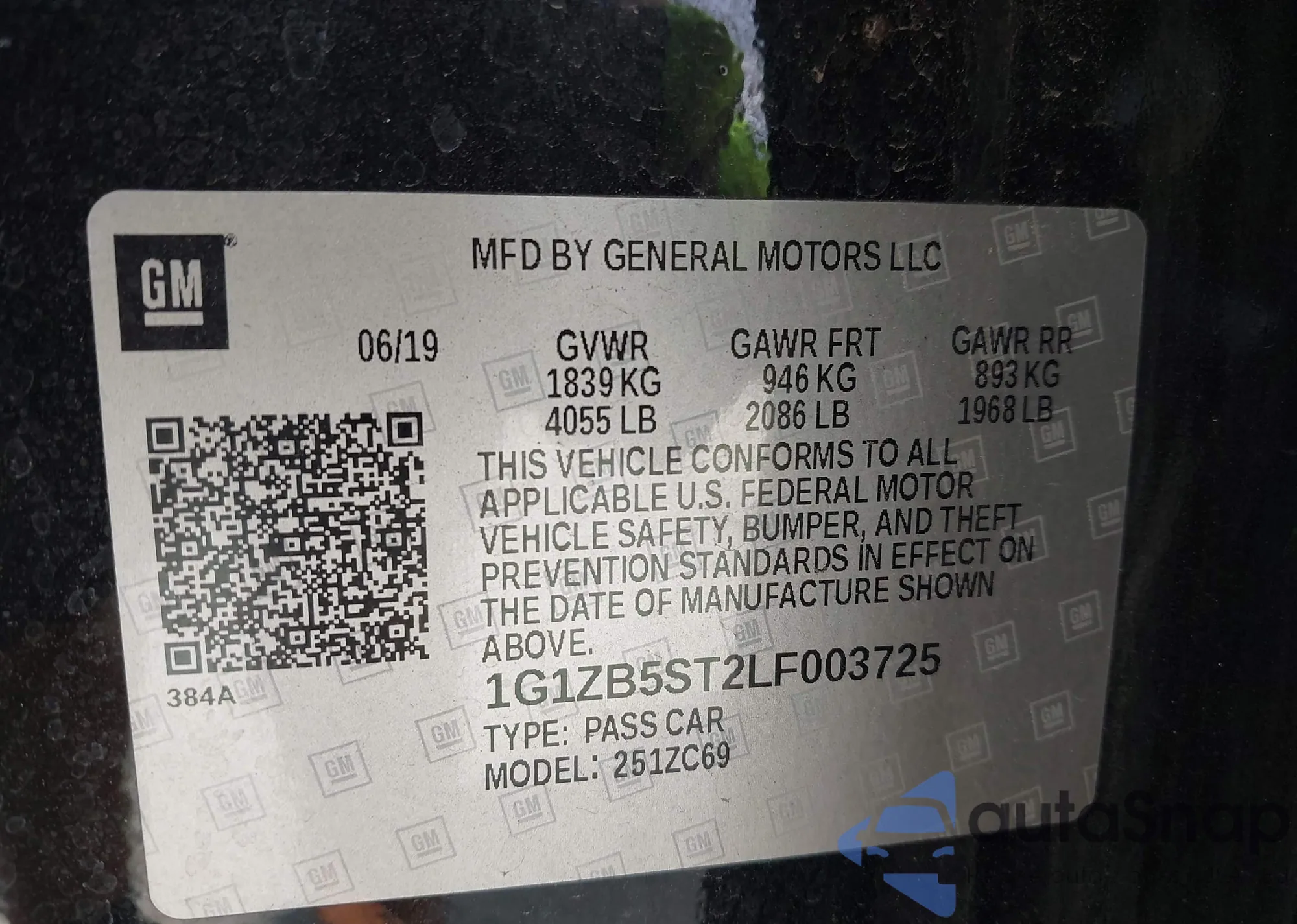 • VIN 1G1ZB5ST2LF003725