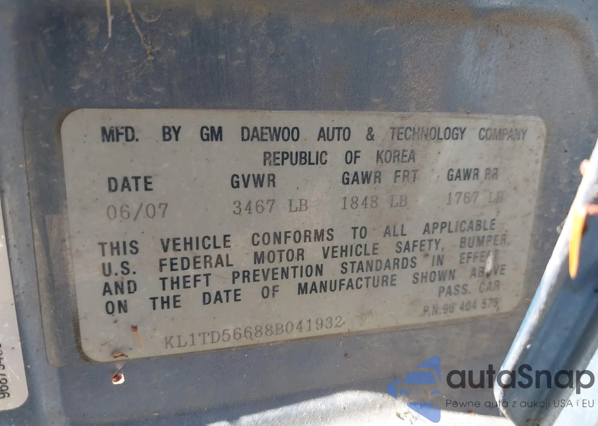 LOT: 43250954 VIN: KL1TD56688B041932