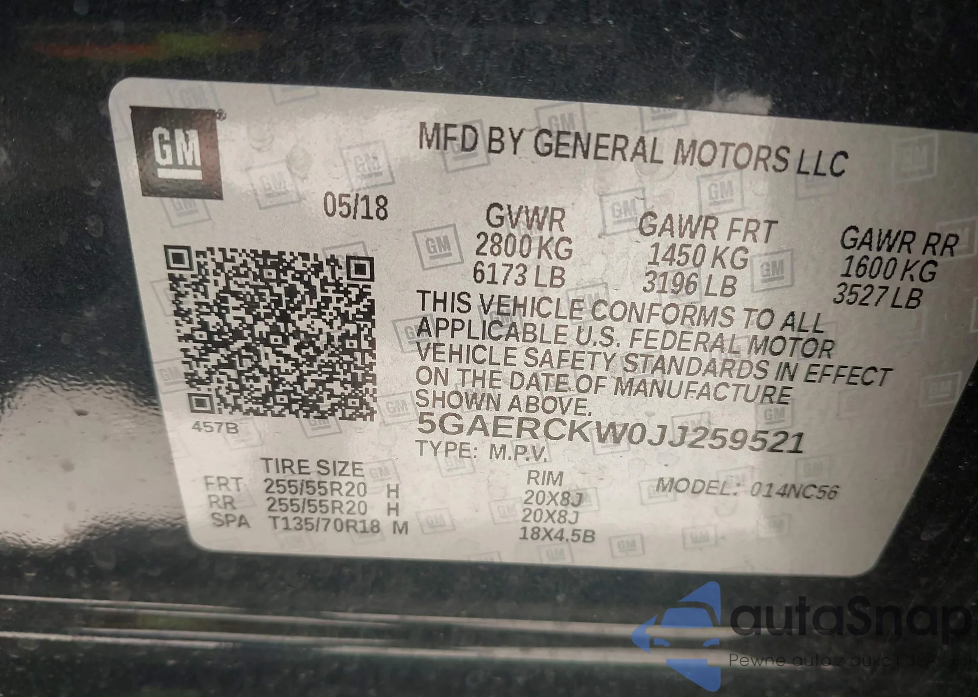 LOT: 42835894 VIN: 5GAERCKW0JJ259521