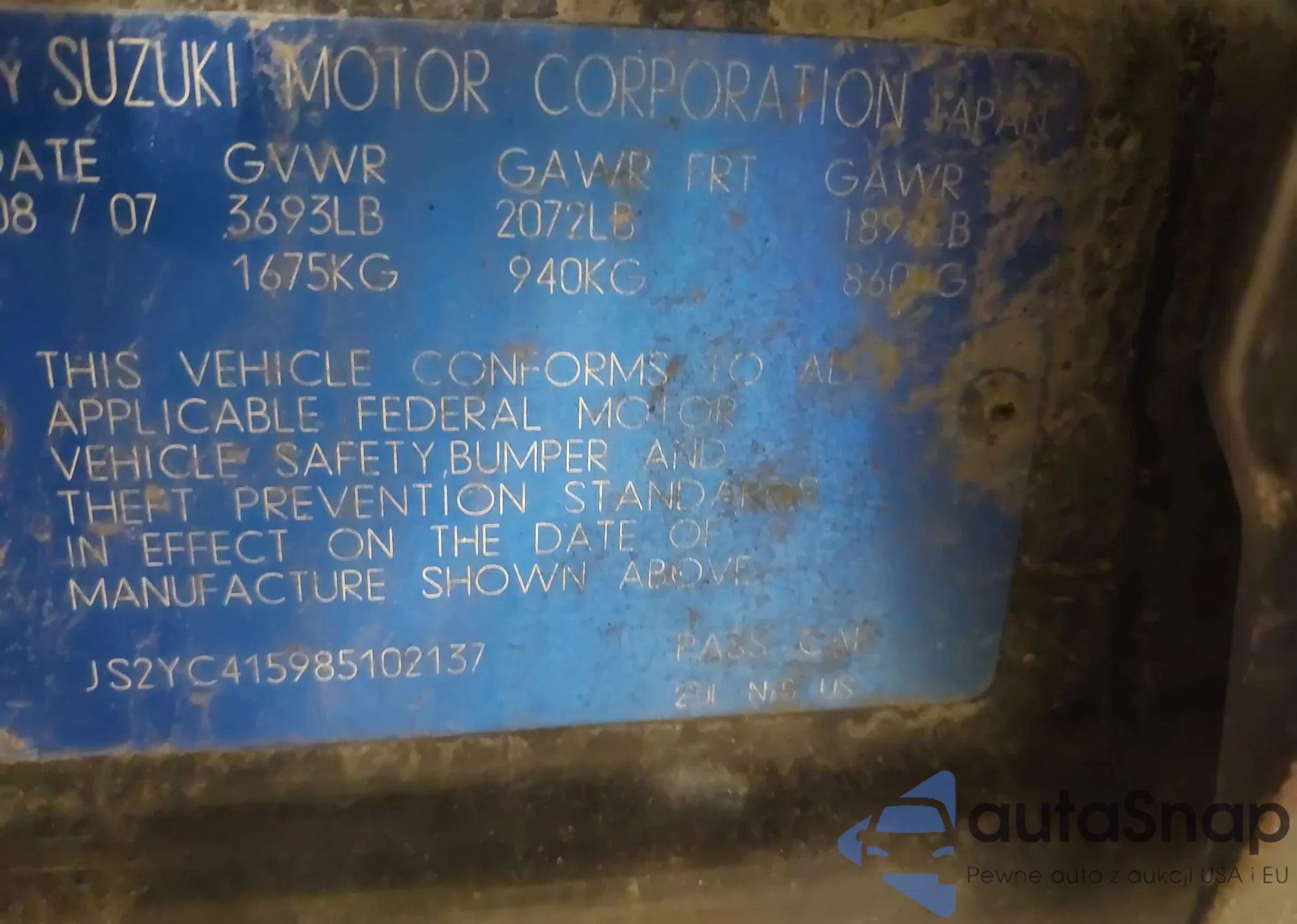 • VIN JS2YC415985102137