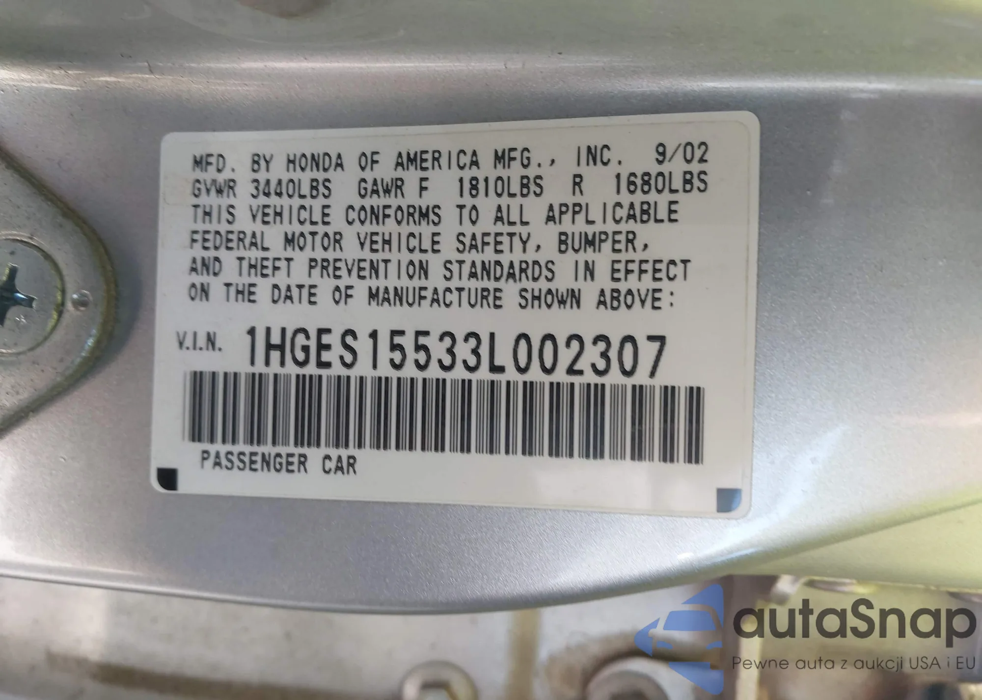 LOT: 43634357 VIN: 5FNYF3H51FB031948