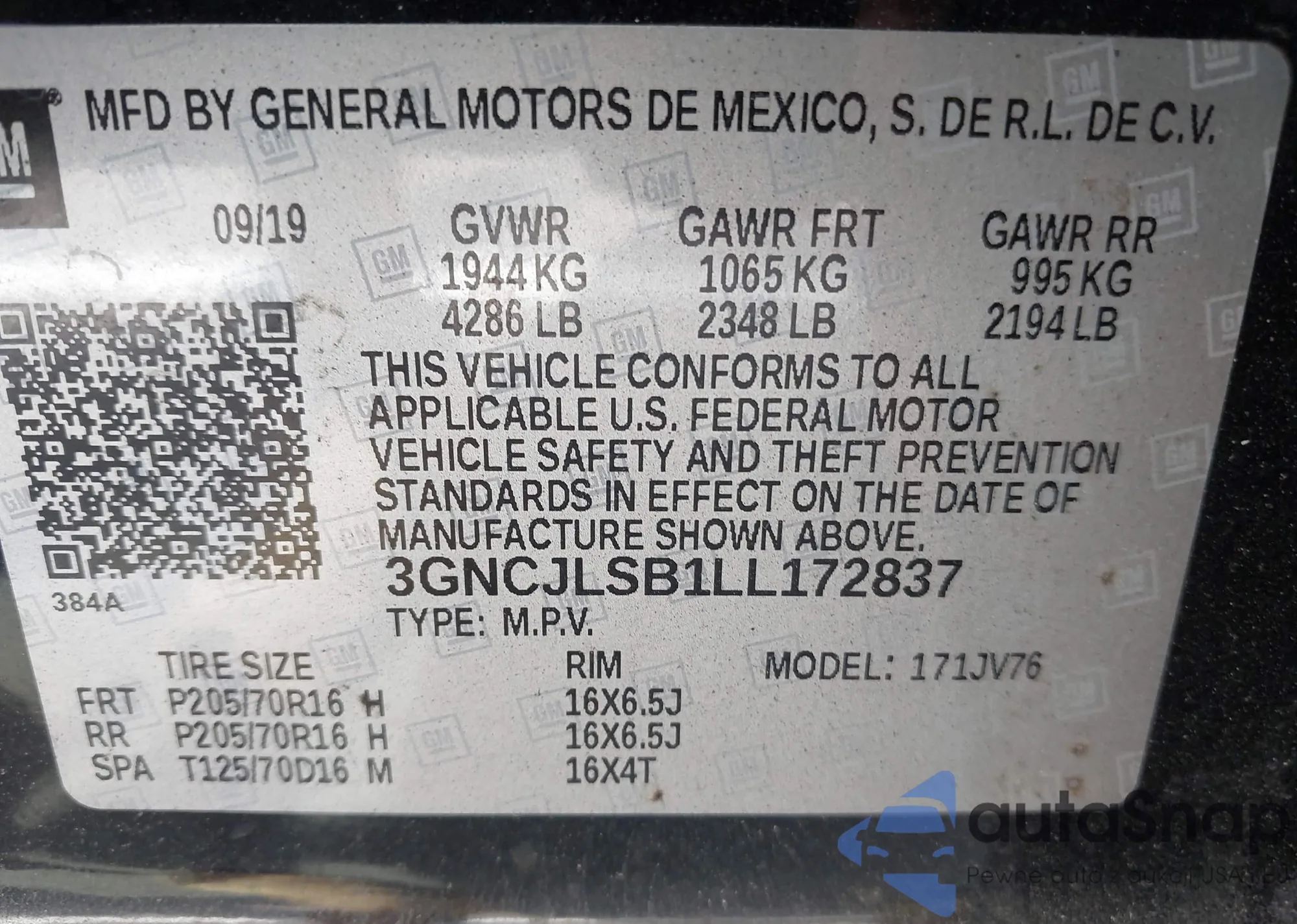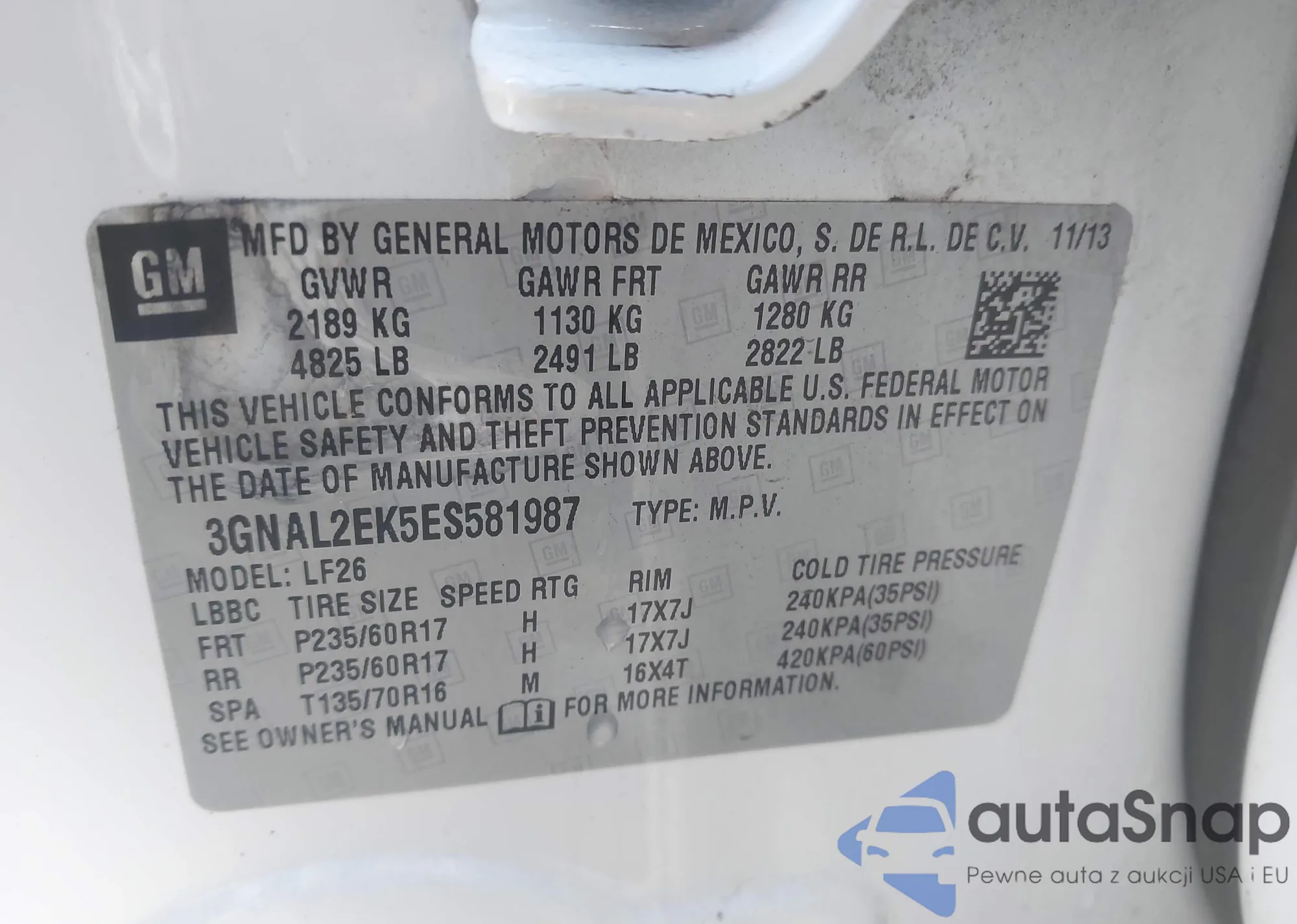 • VIN 3GNAL2EK5ES581987