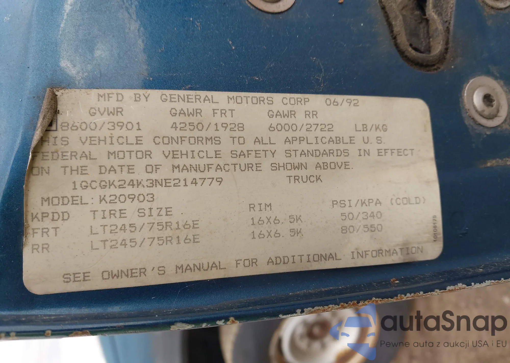 • VIN 1GCGK24K3NE214779